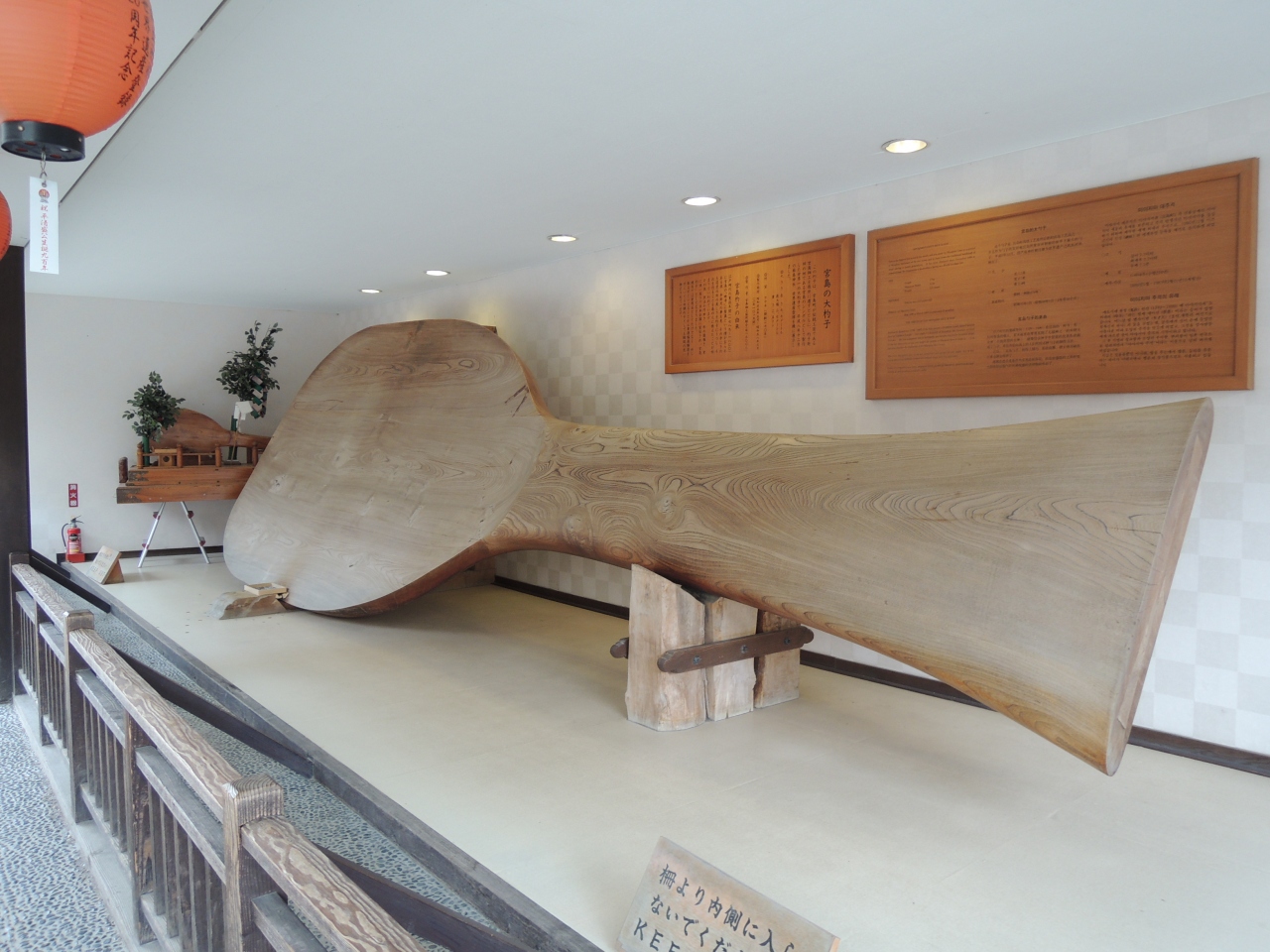 デカいなぁ。というのが第一印象の大杓文字。宮島が杓子発祥の地とされていることから作られたものだそうで、商店街の一角に展示されています。現在は展示されていな用ですが、そのうち展示予定だそうで、それまでは商店街で見ることができません。
