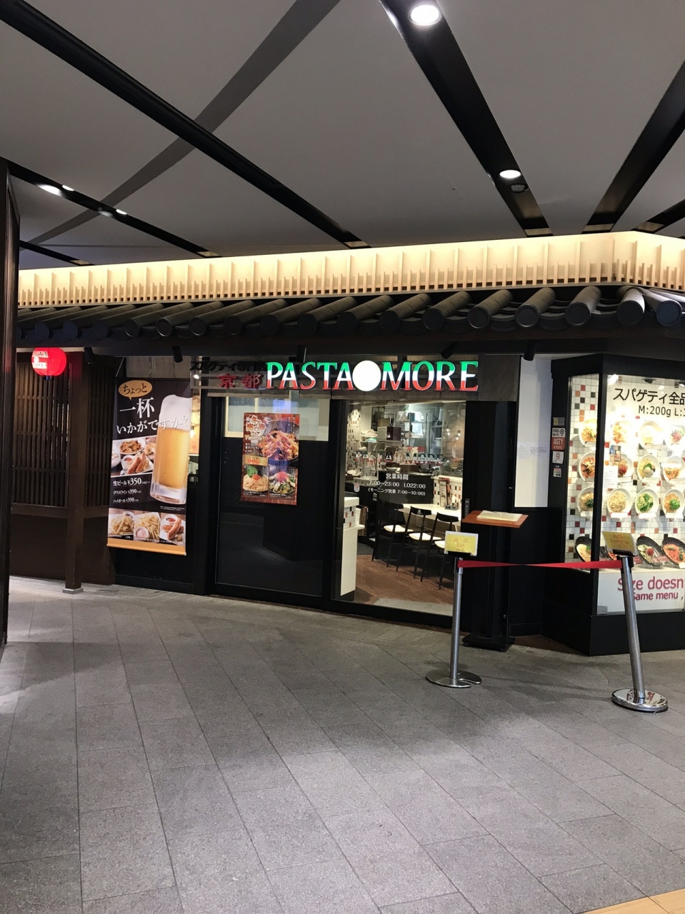 京都駅の新幹線口側・八条口の方にあるイタリアンレストランです。パスタのお店です。ランチタイムだったので混んでいました。大盛りも特盛も同じ金額でした。大盛りをいただきましたが、すごい量でした。味が少し濃いめです。
