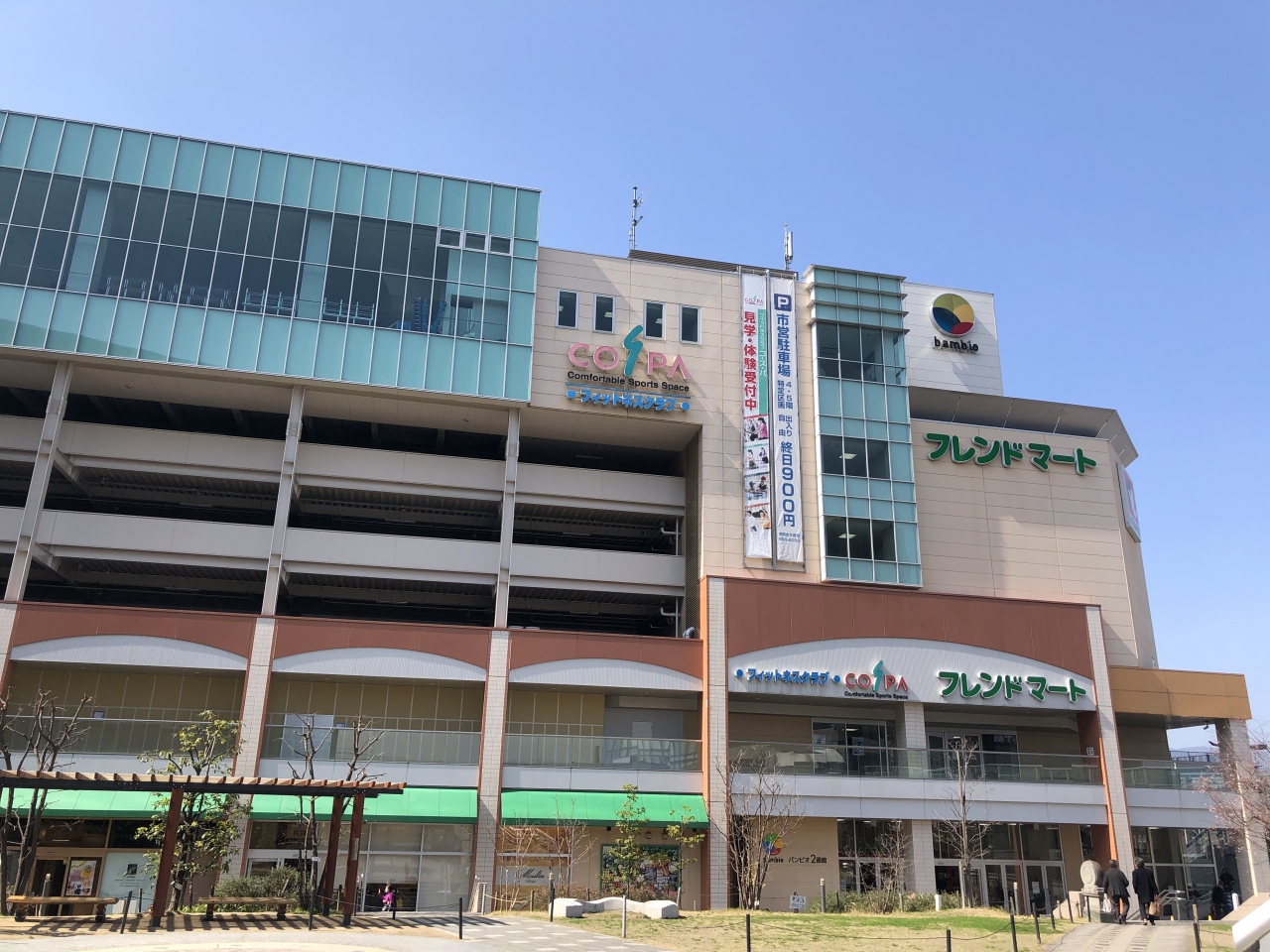 1番館に観光案内所、貸会議室などがあります。2番館は、1階にフレンドマート(スーパーマーケット)、最上階にジム(コスパ)があります。1番館、2番館共に居酒屋など飲食店が入っています。