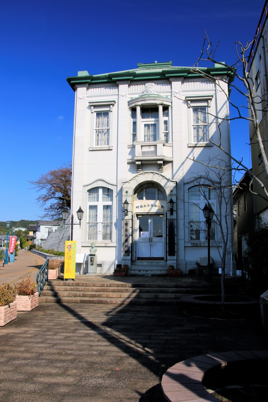 柳井駅から麗都路通りを白壁の町並み方面へ10分ほど歩いて行くと、レトロな洋館が見えてきます。この洋館は明治40年に周防銀行の本店として建てられたもので、現在は柳井市町並み資料館として使用されているそうです。時間がなく内部は見学しませんでしたが、特徴ある洋館のデザインは麗都路通りで郵便ポストとしても活躍中でした。