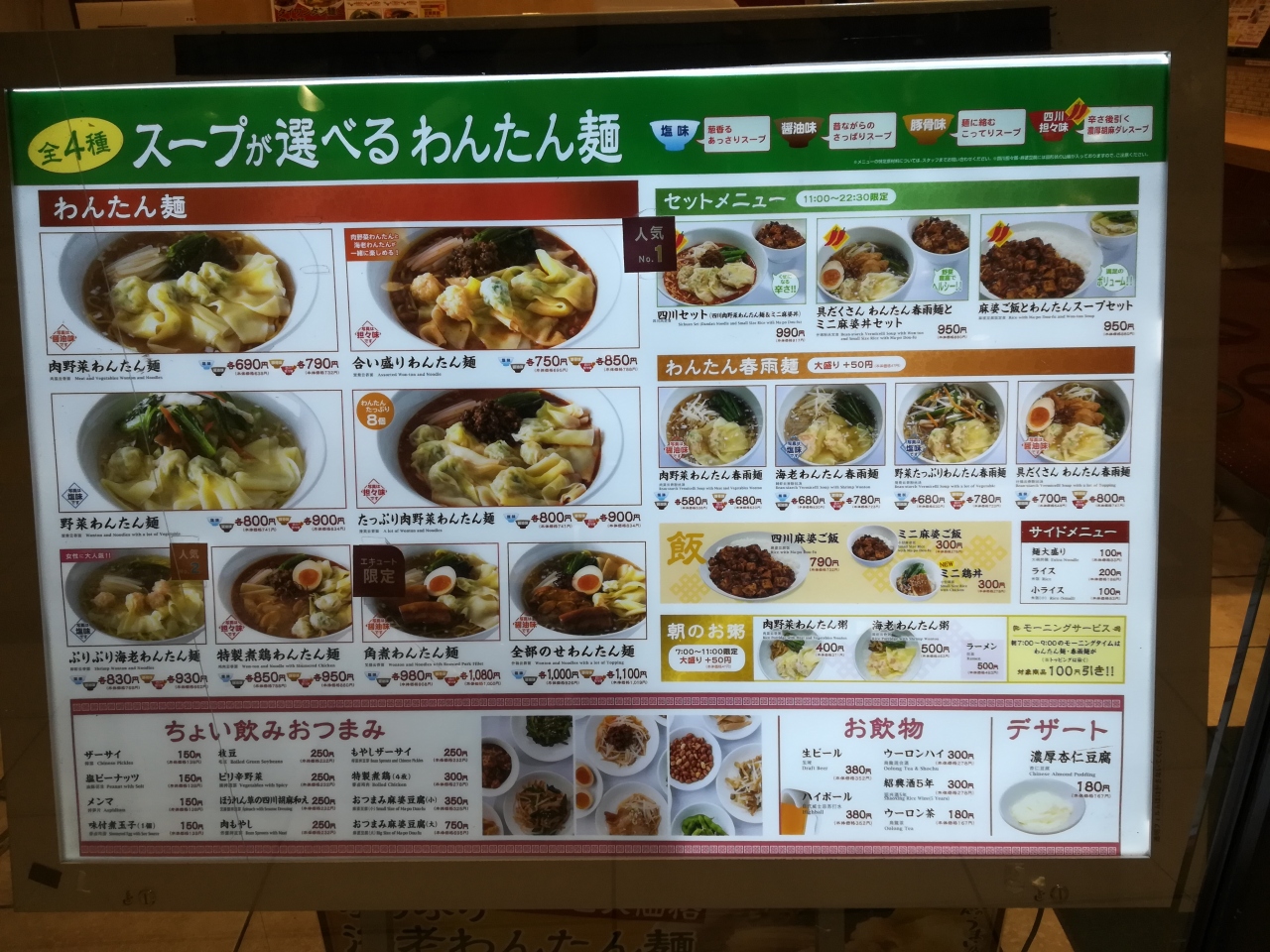 すごく寒い日で、温かいものを食べたかったのですが結構どこも混んでいて、改札まで来てしまい入ったお店がこちらです。お肉や野菜がたっぷり入ったワンタンが800円から1000円位で食べられます。結構ボリューミーです!