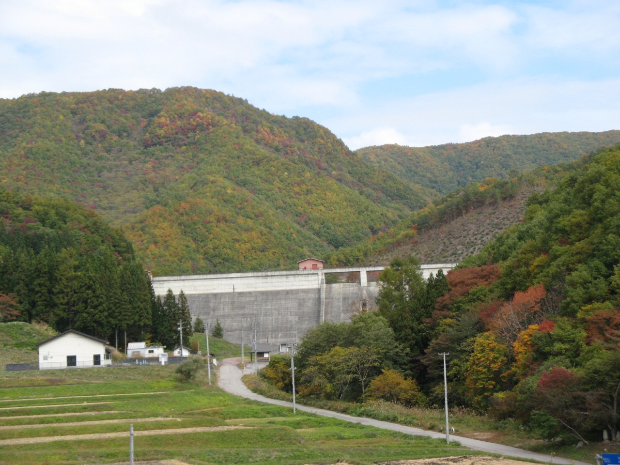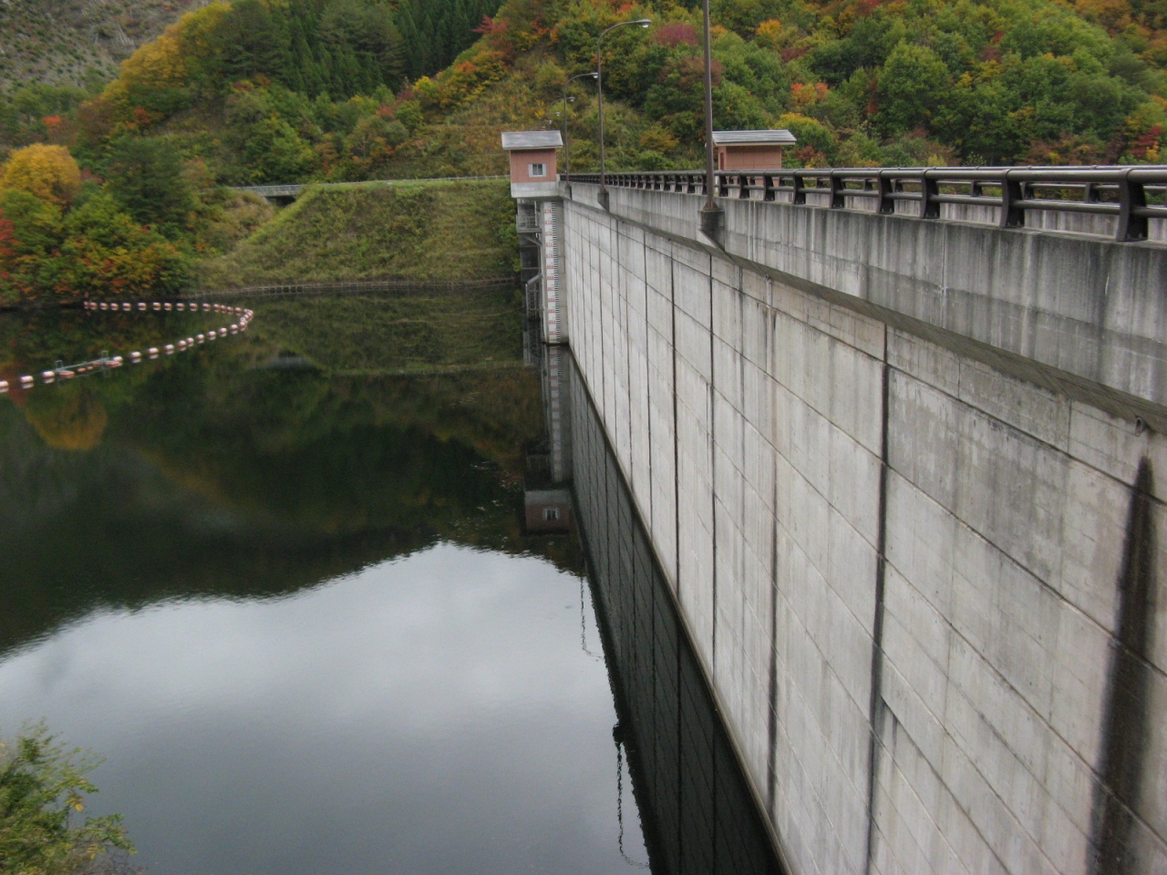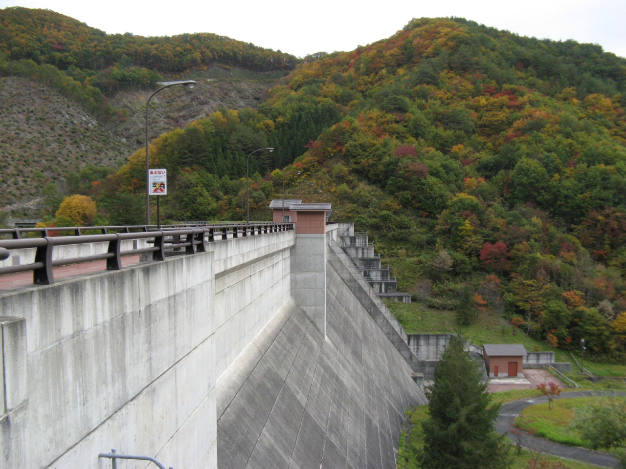 ダムの高さは36m、ダム湖も周囲1kmに満たない小さな池のような、こじんまりとしたダムですが、紅葉し始めた周囲の景観にマッチしてとてもいい雰囲気のダムでした。