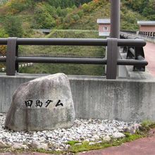 「田島ダム」は洪水調節、流水の正常な機能の維持、水道用水を目的とした、堤高36m、堤頂長200mの重力式コンクリート式ダムです。