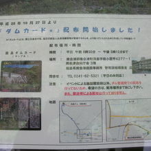 なお、当ダムの管理所は通常は無人になっていて、ダムカードは南会津町田島にある福島県南会津建設事務所にて配布されている旨の表示がありました(添付写真を参照ください)。ダム見学後、福島県南会津建設事務所に出向き、ダムを訪れた証拠写真を見せてダムカードを頂くことができました。