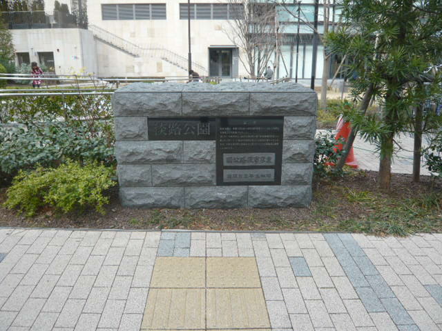 公園内には、移転した淡路小学校の記念碑があります。