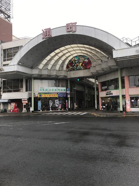 亀山城へ行って来ましたが、訪れた日は雨でした。丸亀駅にある観光案内所で丸亀城へ行くバスはないかと尋ねると、浜町商店街とこの丸亀通町商店街はアーケードになっているので、ここを通って行けば丸亀城の近くまで行けると教えてくれました。美味しいうどん屋さんも尋ねると、この通町商店街にあるうどん屋さんを紹介されました。浜町商店街のシャッター街に比べるとましでしたが、それでもかなり寂れた商店街でした。