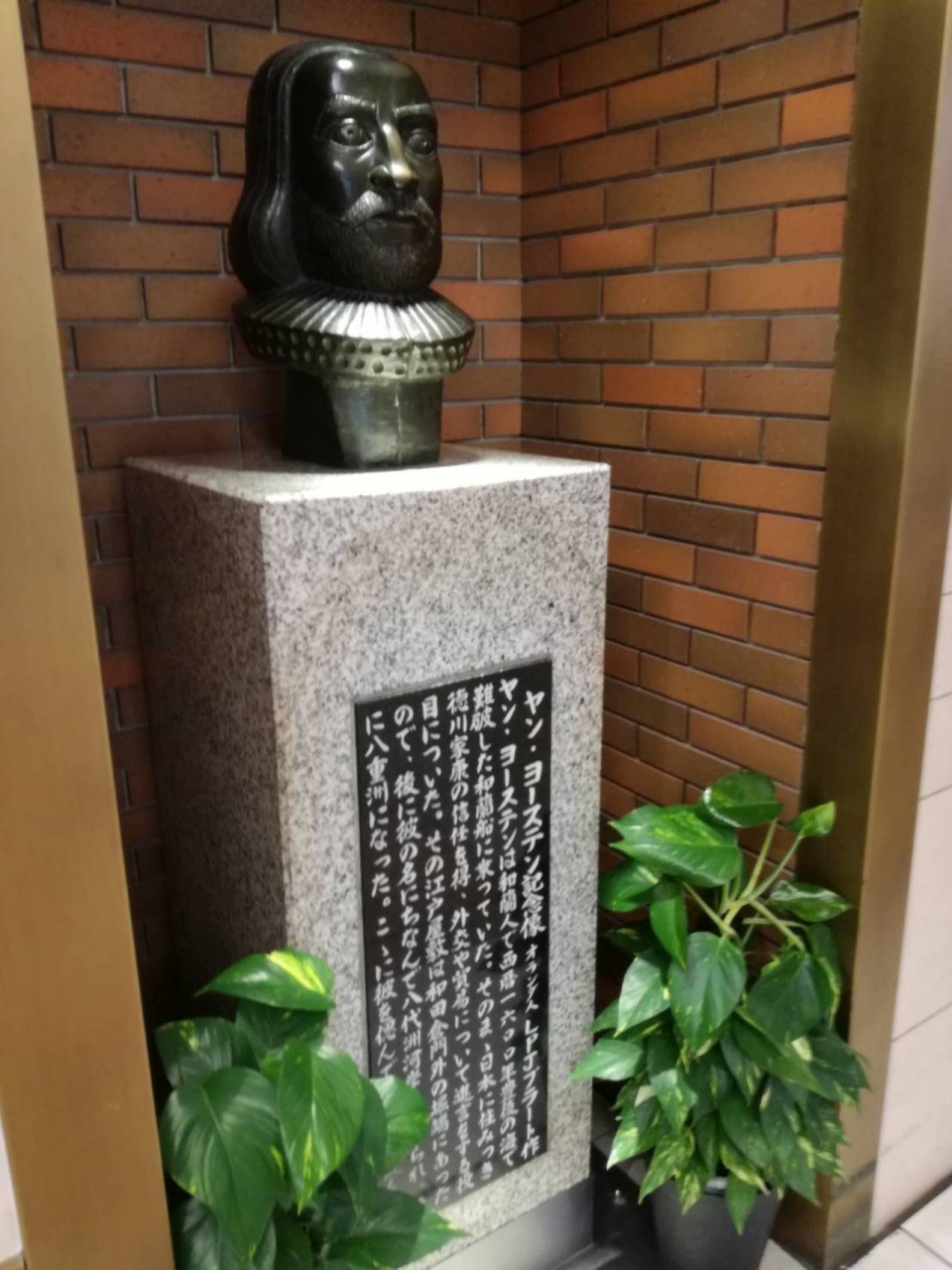 八重洲地下街を歩いていると、ヤン・ヨーステンの記念像はありました。ヤン・ヨーステンはオランダ人で豊後の海で難破したオランダ船に乗っていた人物です。漂着後、そのまま日本に住みつき徳川家康の信任を得て、外交や貿易について進言する役目となり、「八重洲」の地名の由来にもなった歴史的にも有名な人物であったことを知り驚きました。インパクトがある記念像でしたが、人通りが多い、八重洲地下街にある割りには、立ち止まって見る人もおらず、ひっそりと佇んでいました。