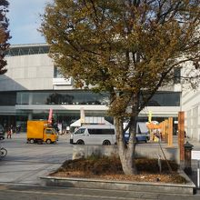 ひめぎんホールは、大街道から道後温泉の方に向かう電車通り沿い。