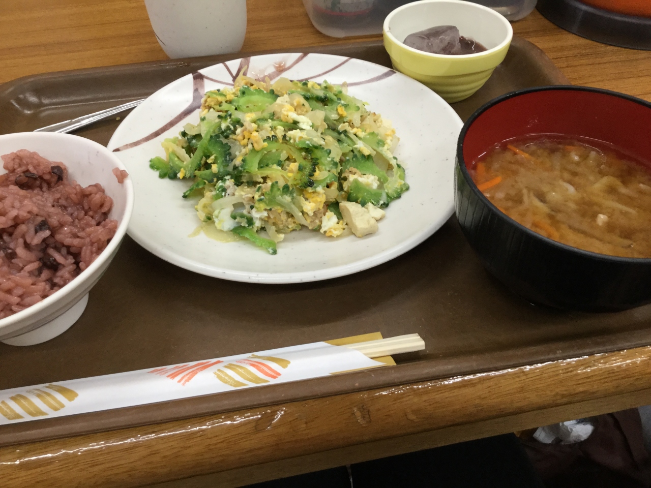 沖縄の那覇の国際通りから平和通りに入っていくと、花笠食堂の大きな看板が見えます。朝11時からのオープンで開店直後に入ったので座れました。人気店で混んでいる時は相席も有るそうです。まずボリュームに驚き、ご飯は少なめにしましたが、それでもふつうの量でした。そのご飯が赤米で、モチモチして美味しかったのです。好きなゴーヤの定食にしたら、汁ものは、そうめん、味噌汁、沖縄ソバから選べて味噌汁にしたら具たくさんで、ゴーヤもあっさりと食べやすく、その上、沖縄ぜんざいもついていて800円で、美味しく沖縄料理を堪能出来ました。ぜんざいは、もずくに替えれるそうです。地元の中高年の女性のスタッフの皆さんが、忙しいお店だと思うのですが、気さくに丁寧に温かく応対していて気持ちよかったです。朝ご飯を食べて、少ししか時間が経ってなかったので迷いましたが、量の割にもたれず、心温まるランチタイムを過ごせました。