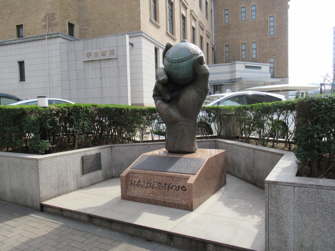 この大きな手から投げられたボールなら全国に届くだろう と思う位大きく迫力ある像で、他では見れない珍しい記念碑だろうから機会をみてご覧になっては如何でしょう。