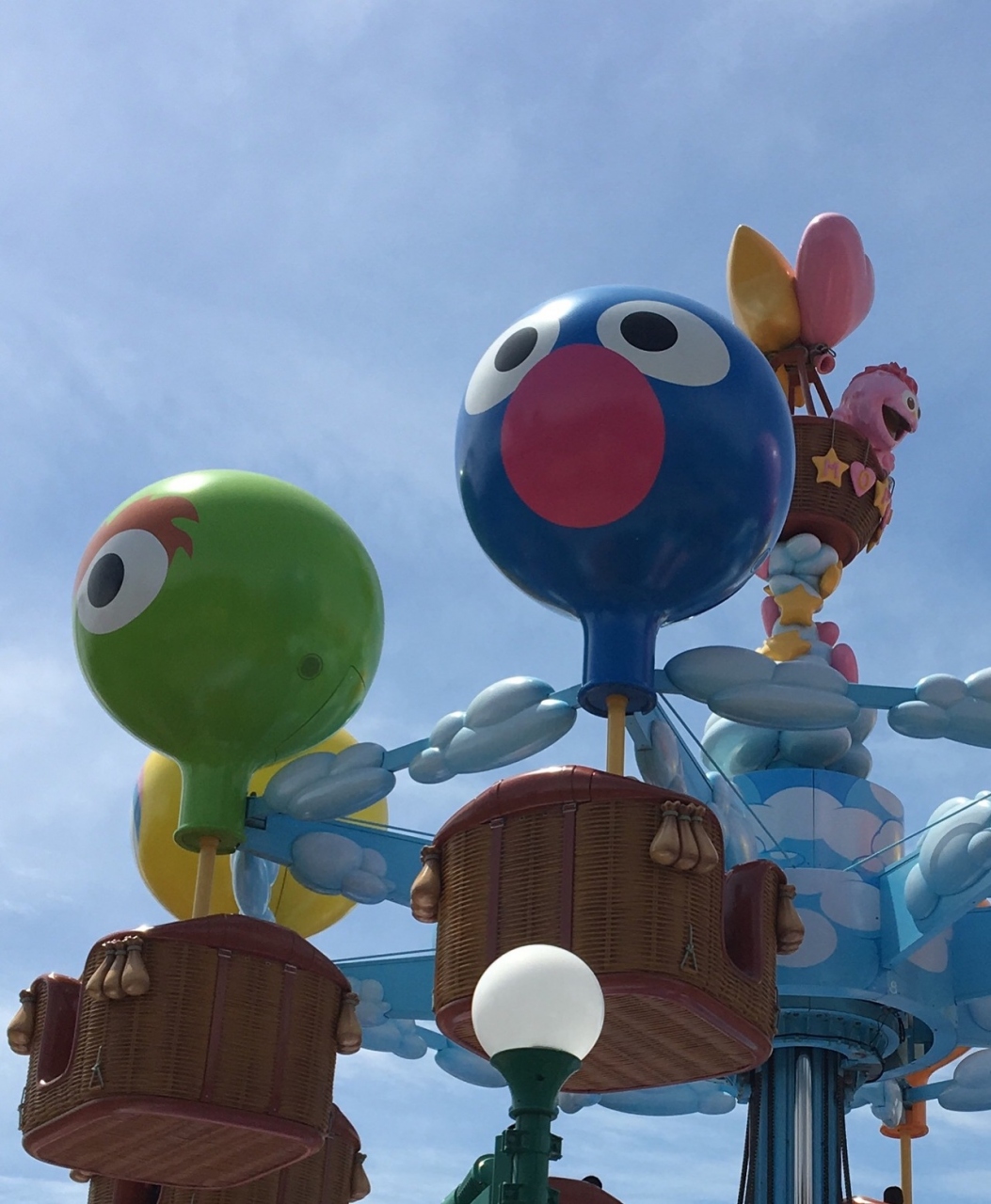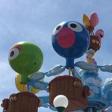 セサミストリートのキャラクターをモチーフにした気球に乗っているようなアトラクションです。ゆっくりふわふわと動くので、小さなお子様でも楽しめます。身長92センチ以上なら家族と一緒に乗れるそうです。我が家の子供も怖がりなんですが、楽しんでいました。