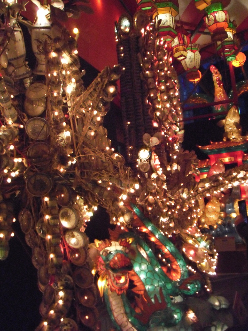 目を凝らしてみると 手前の龍、お猪口とレンゲでできてるんです