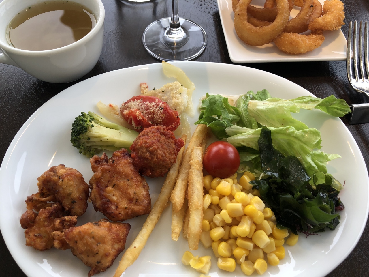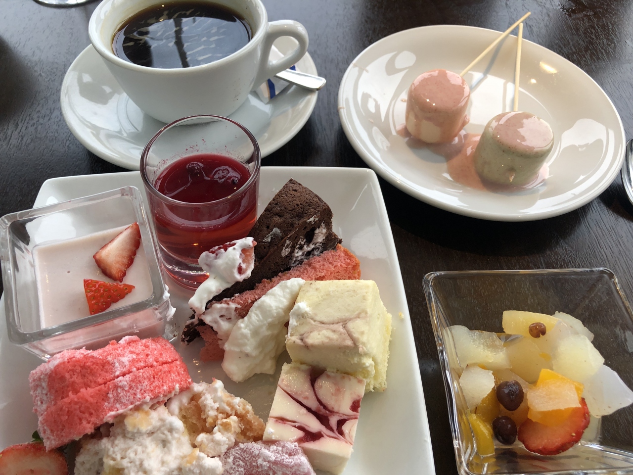 ビュッフェスタイルの前菜、パスタorスパゲティ、デザートビュッフェ(苺フェアでした)ドリンクで、1900円でした。
