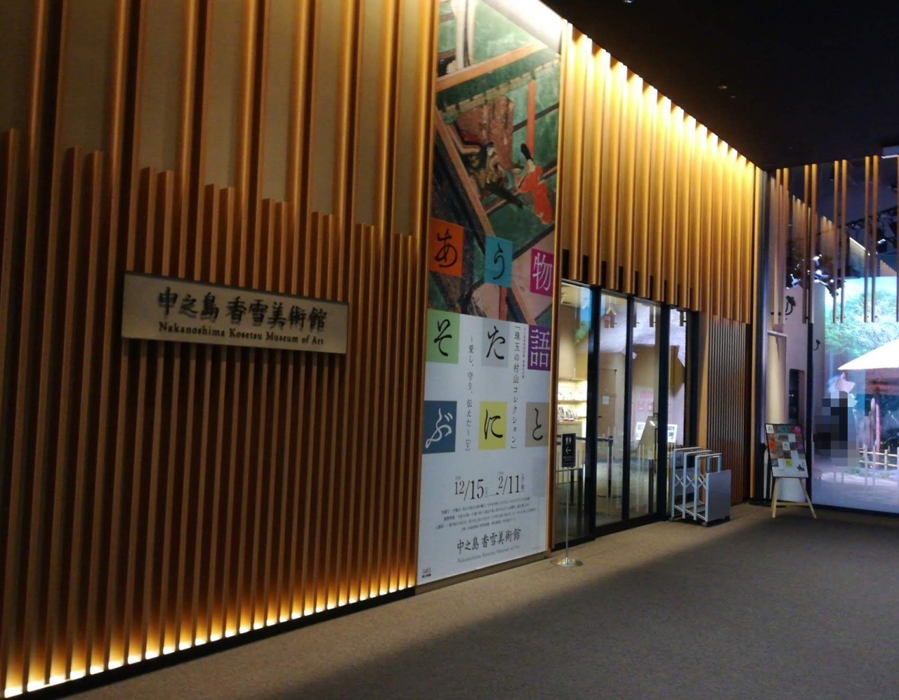 フェスティバルホールから四ツ橋筋向かいのウエストにありました。入口は川側にあります。長いエスカレーターを上がって行きました。この美術館は、朝日新聞社の創業者の村山龍平氏が収集した日本と東アジアの古美術品を所蔵しています。もとは神戸の方にあったそうですが、コレクションごとこちらに最近移設されましたが、国指定重要文化財である茶室は、ビル内に忠実に再現されたものがあり、一番の見どころでした。