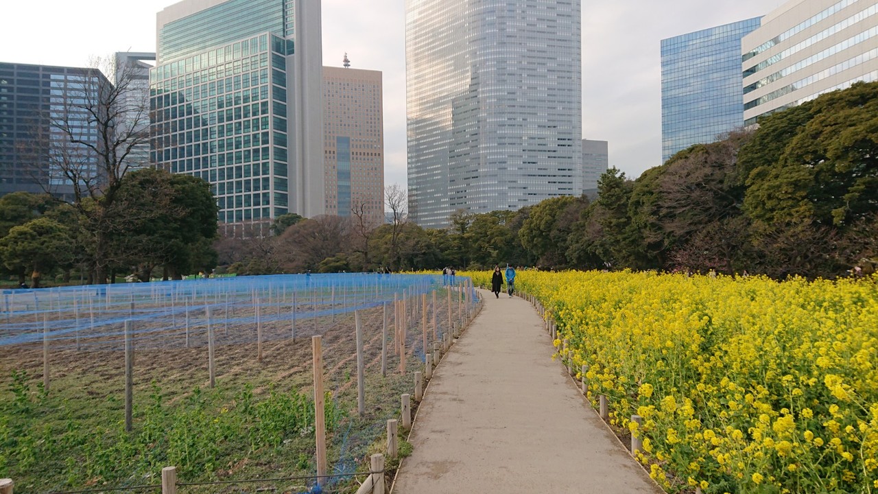隣では「お花畑」では黄色い「菜の花」が一帯に広がっておりました。奥には梅林が続き、花を沢山、鑑賞できます