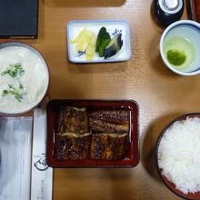 宮崎に行くと必ず立ち寄る店の一つで県外からも多くのフアンが、このうなぎを食べに立ち寄る名物店で、多くの有名人も訪れている。ここのお勧めはうなぎだけでなくセットメニュ-で出てくる呉汁、漬物、肝等も一味違う。ご飯も大きな釜で炊くので味が一味違う。