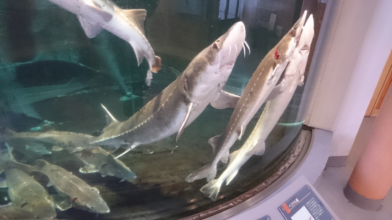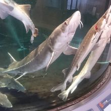 珍しいチョウザメを見学