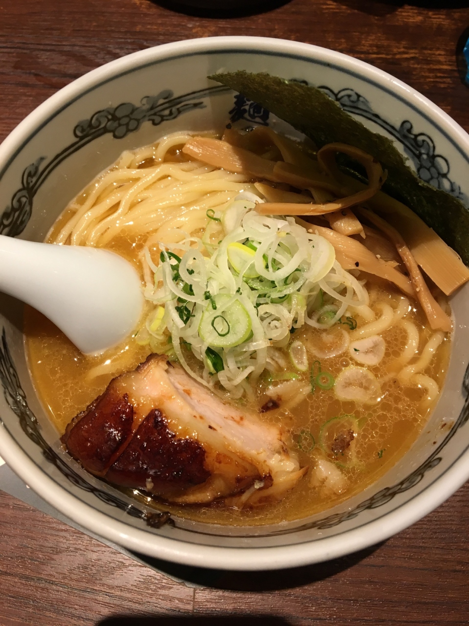 神田駅近くにある麺屋武蔵神山。なんといってもチャーシューが大きく温かくて美味しいです。何人かはチャーシュー丸ごと一本乗ったの食べてましたが、一切れ追加も出来ます。そして麺の量も並、中、大、特大と値段一緒。