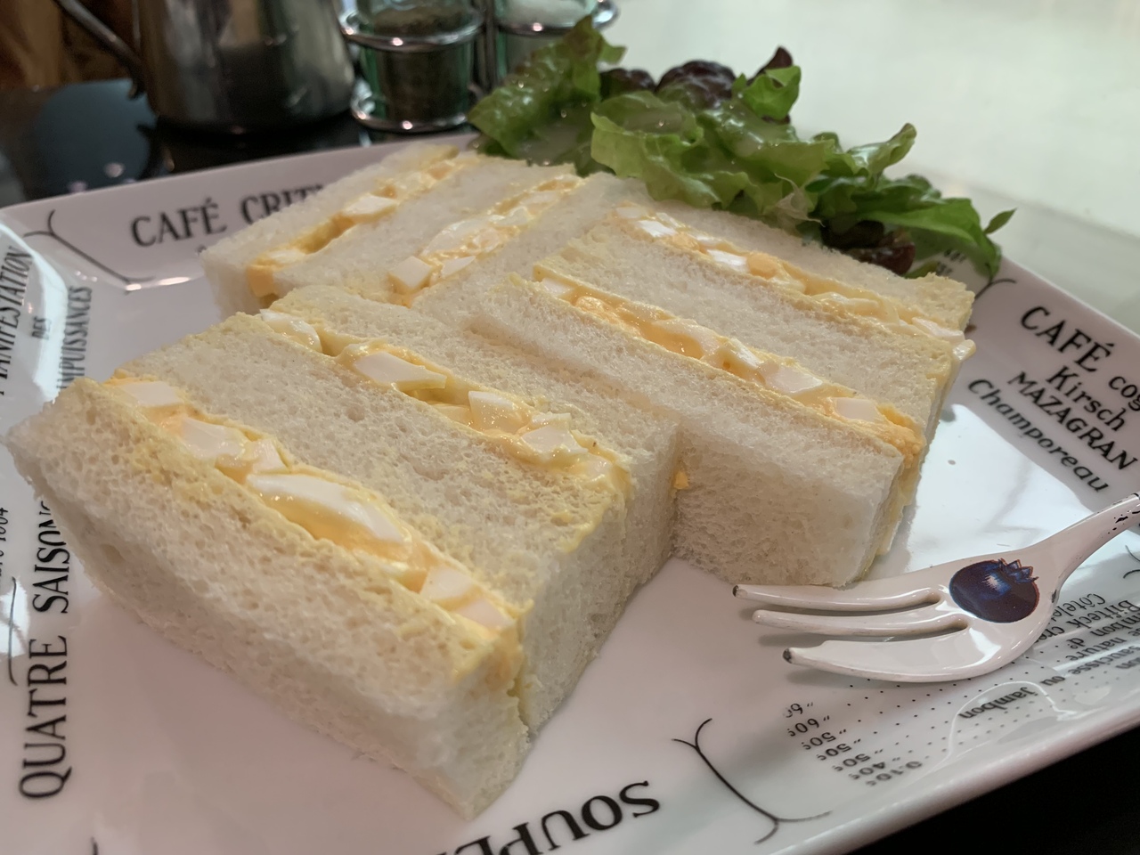 有楽町ビルの1階にある喫茶店です。レトロな雰囲気で分煙されています。禁煙席は少ないです。フルーツサンドも人気だそうですが、たまごサンドにしました。ふわふわで濃厚で美味しかったです。ほかのサンドイッチも食べてみたいです。