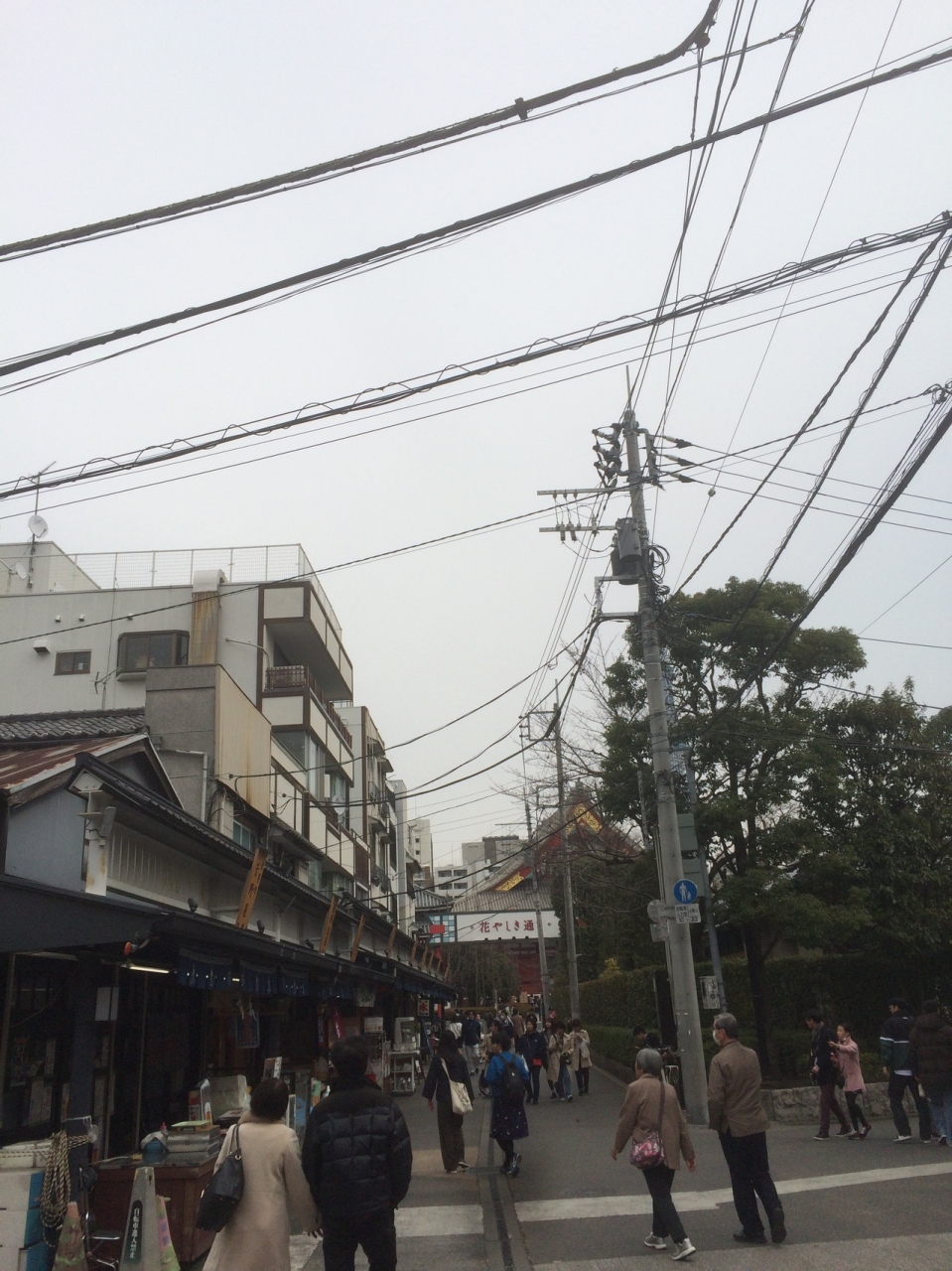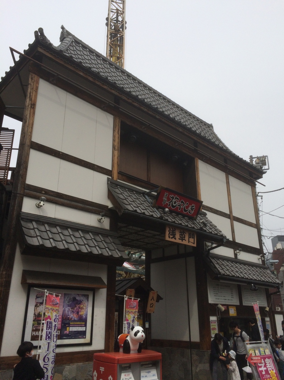 通りを歩いていると時々悲鳴が聞こえました。浅草花やしき遊園地からの声でした。浅草寺の裏側にあるので比較的人は少なく、店もぎっしりと連なってはいませんでした。ぶらっと歩くには歩きやすい通りで飲み屋も数件ありました。