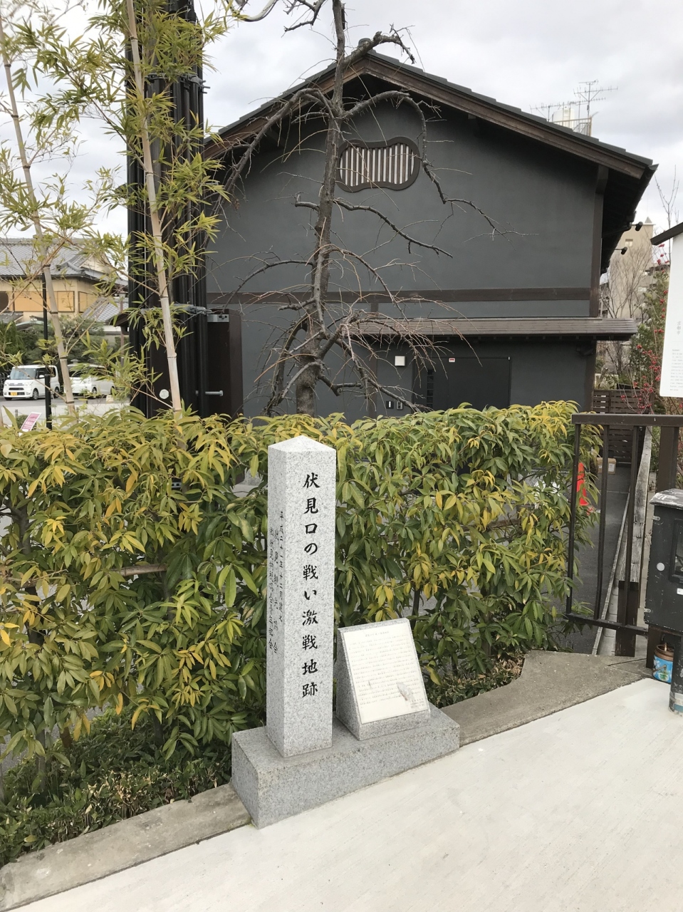 豪川に架かる京橋たもとに、幕末の伏見鳥羽の戦いでの伏見口の激戦地の碑がある。