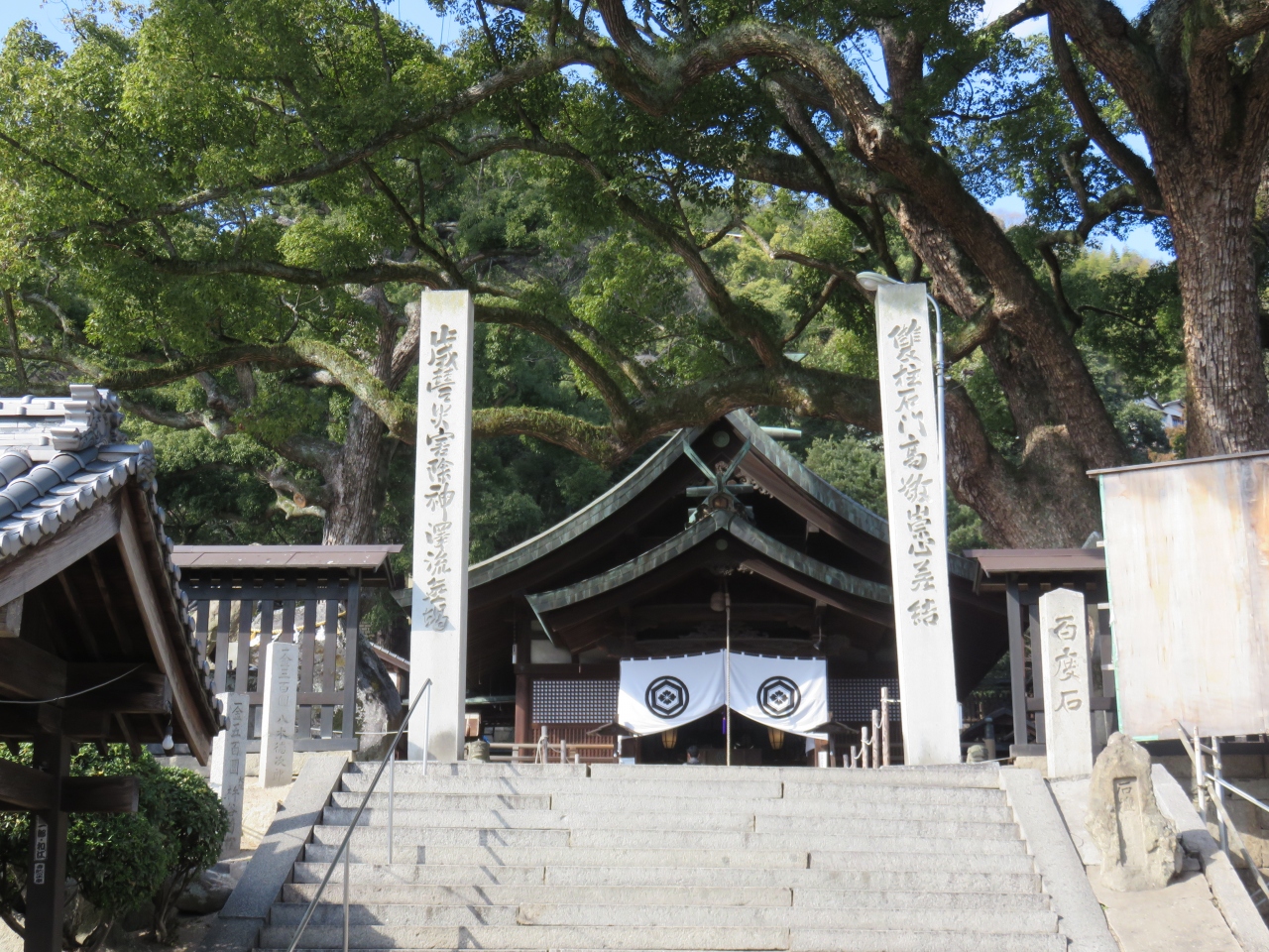 千光寺公園ロープウエイ乗り場に隣接していて最古の神社と言われ、境内に生えている楠は推定樹齢900年とも言われ、幹の周囲は約7mにおよぶようです。尾道市の天然記念物にも指定されていました。