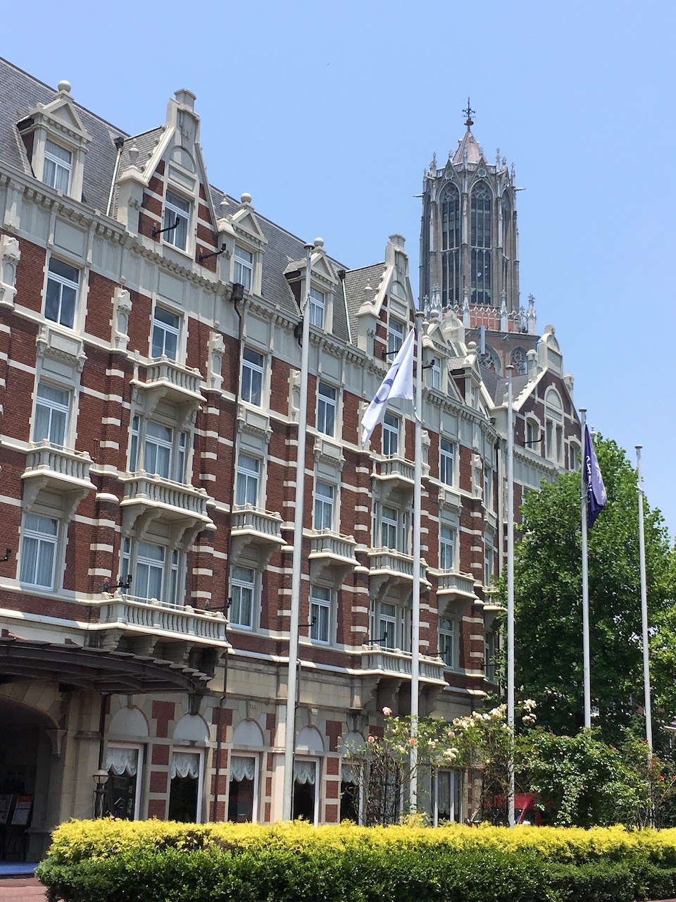ハウステンボス駅を出て橋を渡ってすぐのところに、オランダ風のデザインの立派なホテルが建っていました。