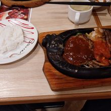 サラダバイキングでしっかりと野菜をいただけます。ハンバーグやその他のメニューもボリュームがあっておいしいですね。