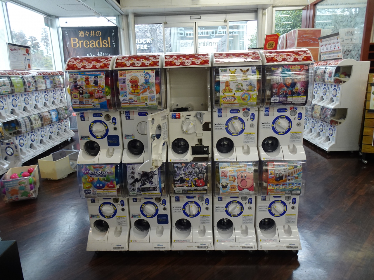 そして見所の一つは建物の一角を占めるガチャポンコーナー。機械がぎっしりと並び大人も子どもも楽しめるPAでした。