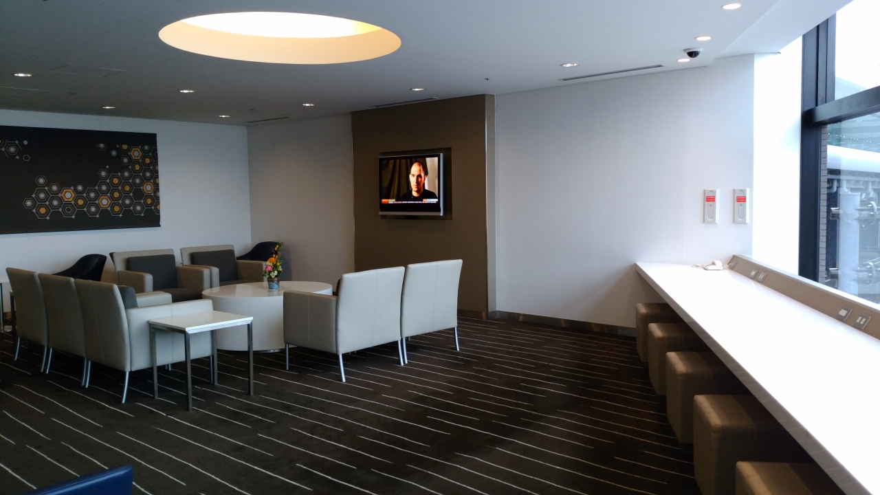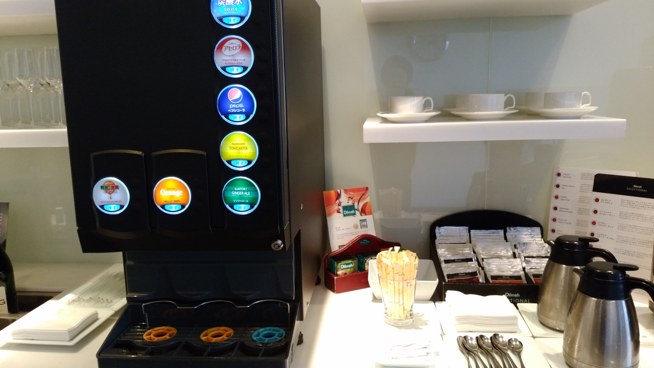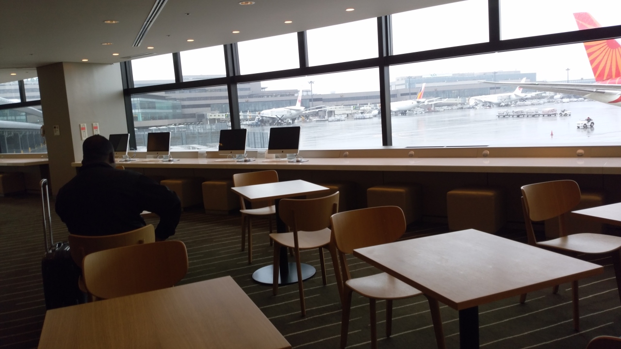 食べ物はあまりなかったですが、マフィンやハム等、JALラウンジにない物がありました。 トロピカルのジュースと共にいただきました。 窓が大きくて、明るい雰囲気でした。