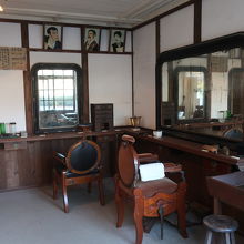 明治村4丁目の呉服座の並び、一番左手にあるのが本郷喜之床です。明治40年代に建てられた文京区本郷にあった理容店です。中に入ると大きな鏡のある古い理容店の姿を見るとことでできます。基本的には今の美容室と変わらず、設備がレトロと言った感じです。