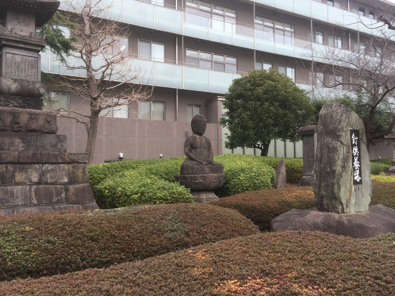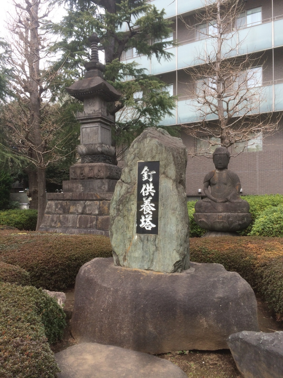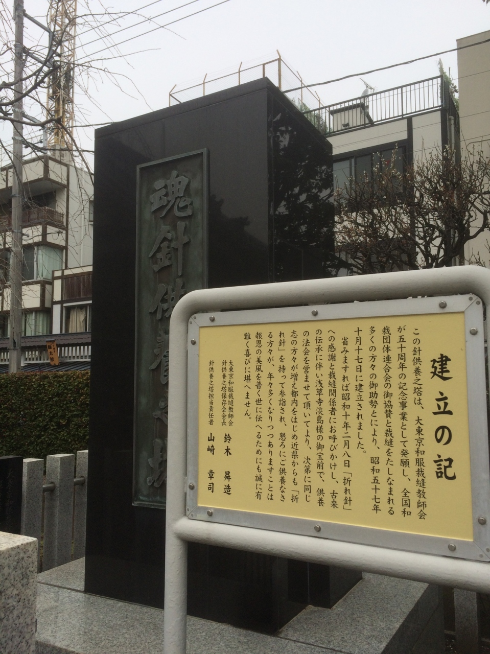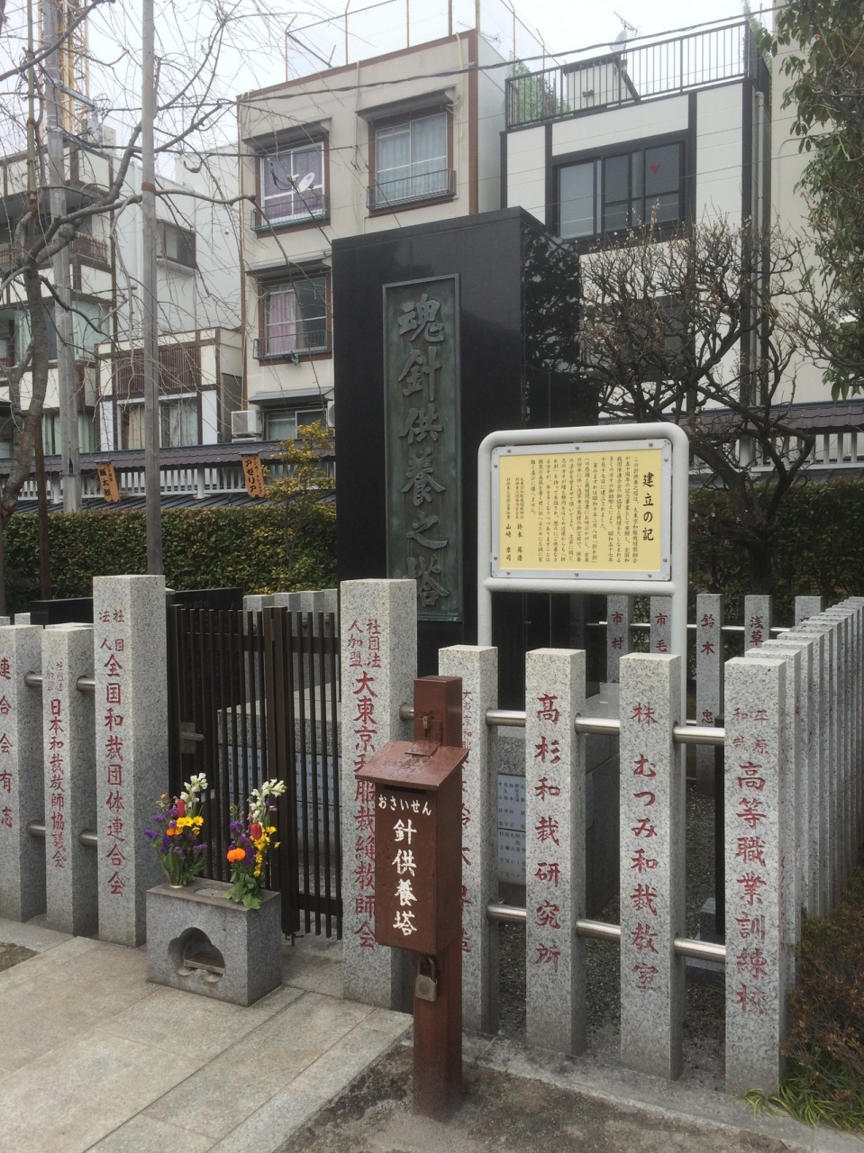 淡島堂の奥にあります。黒い大きな石碑で、その周りを綺麗な縦長の石で囲み、石には会社名、団体名が刻まれていました。針に関するものがあるかと思い見回しましたがそのようなものはなかったです。最近できたのか綺麗な石碑でした。淡島堂から徒歩2分ぐらいのところにも針供養塔があり、此方も立派な塔でした。
