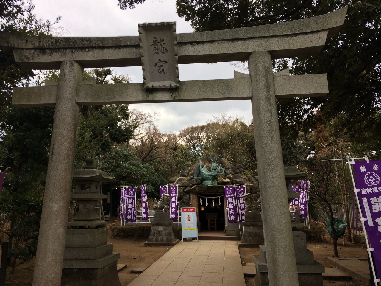 江ノ島大橋を渡って上っていくと江島神社の一番奥に立地しています。お宮を順番に巡っていくとあちこちに階段があり、参拝者は辺津宮や中津宮に比べるとかなり減少しています。でも参拝者の数はこのくらいがちょうど良いですよね。中村屋羊羮店のT字路から辺津宮をまいて島の北西を歩く道があり、こちらから帰ると海の景色を眺めながら歩け、さらに階段なくてかなり楽でした。