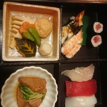 メニューはにぎり寿司とおうどんのセットやにぎり寿司に小鉢等が付いた定食もありました。