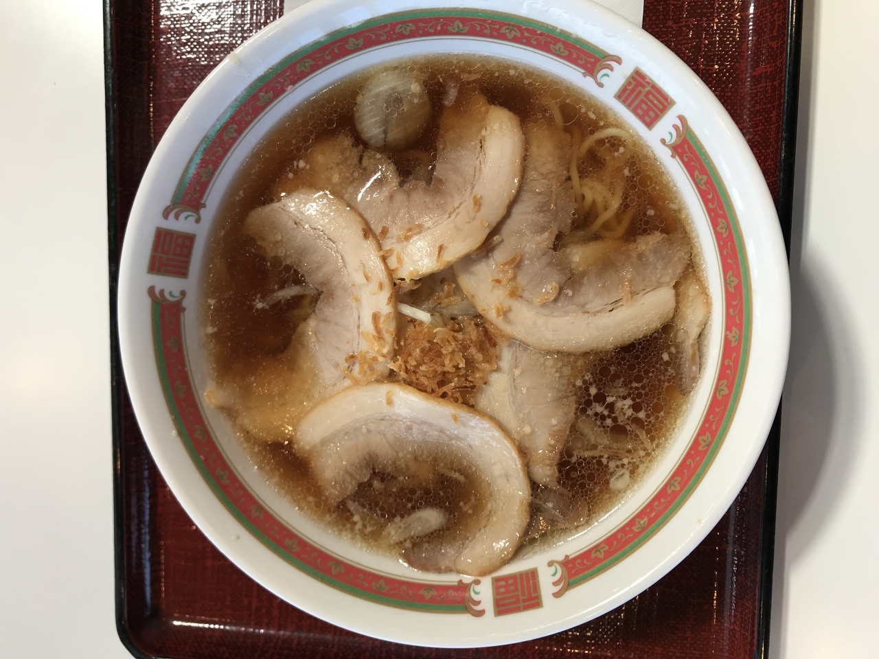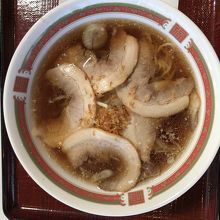 醤油だしベースのチャーシュー麺には、かなりの量の淡路産玉葱スライスとフライドガーリックが入っている。