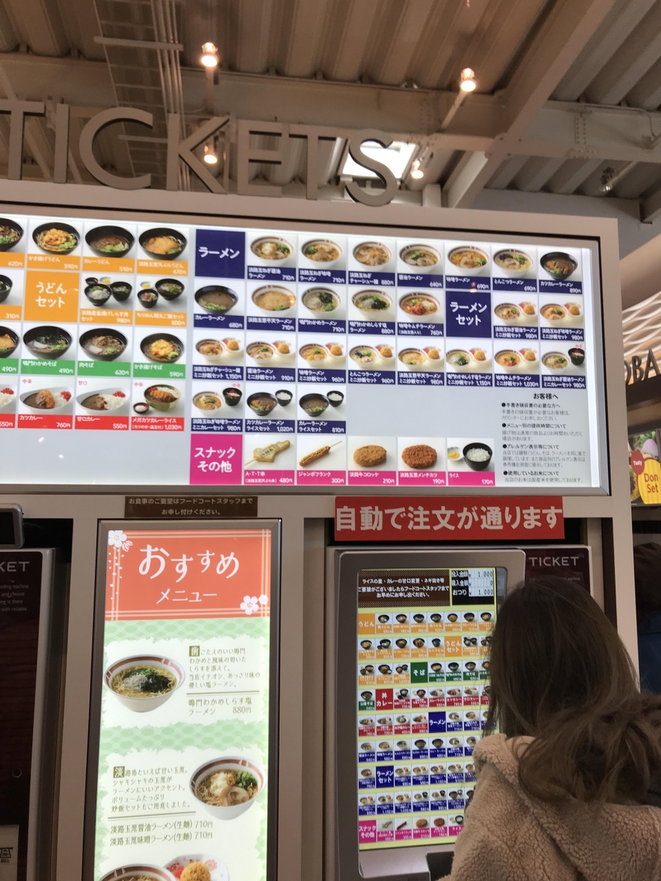 券売機でチケットを買うと、フードコート内の店に情報が届いていて、店にチケットを渡す必要がなく、ナンバーディスプレイにチケットの番号が出たら出来上がりとのことだった。