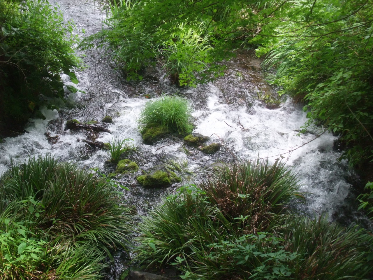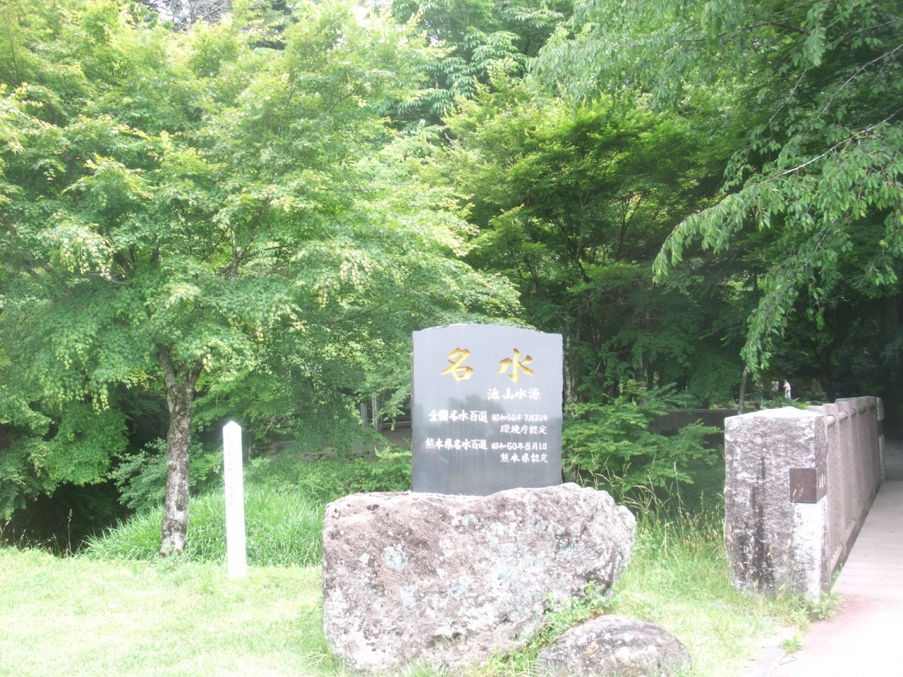 阿蘇の外輪山の山あい標高780m地点にある産山村の池山水源は、1級河川大野川水系玉来川の源流で、全国名水百選、熊本県名水百選に選ばれており、ここでは毎分30tの豊かな水が湧いている。水温は1年を通じて13~14°だそうだ。