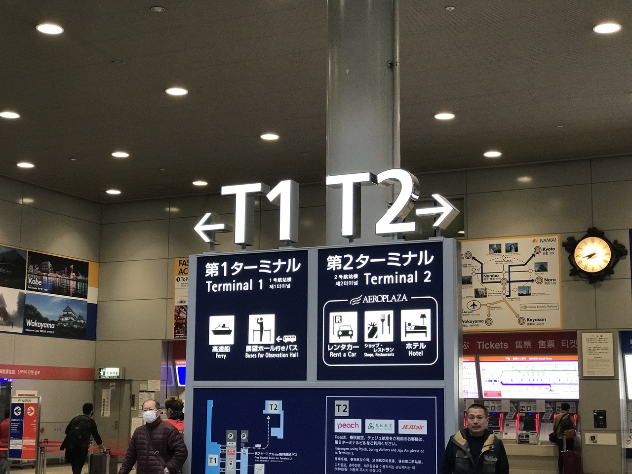 関西国際空港は、大阪にある国際線メインの空港です(国内線は伊丹空港がメイン)。第1ターミナルと第2ターミナルがあり、第1ターミナルは基本的にフルサービスキャリアが、第2ターミナルはLCCのピーチがメインで使っています。