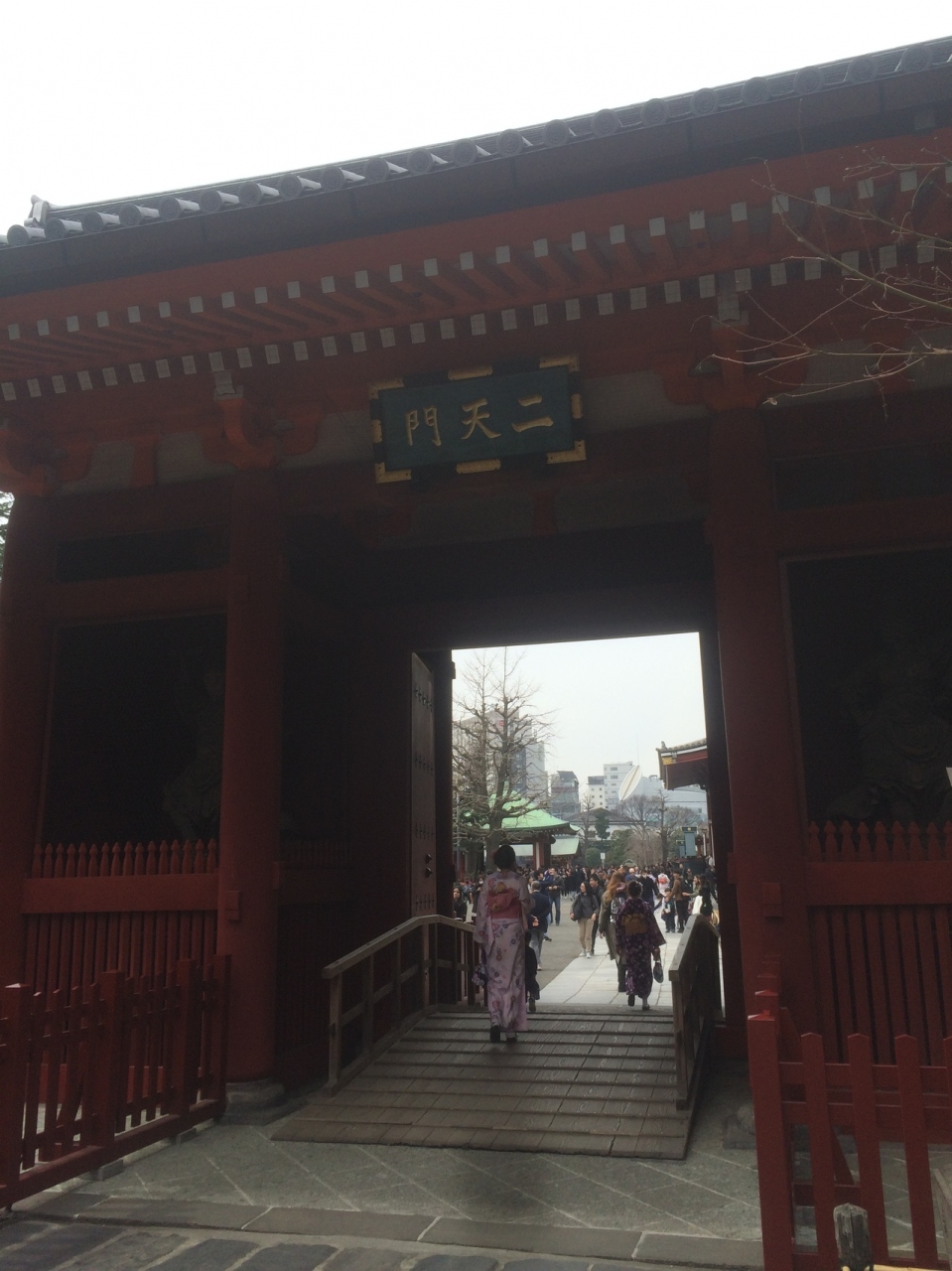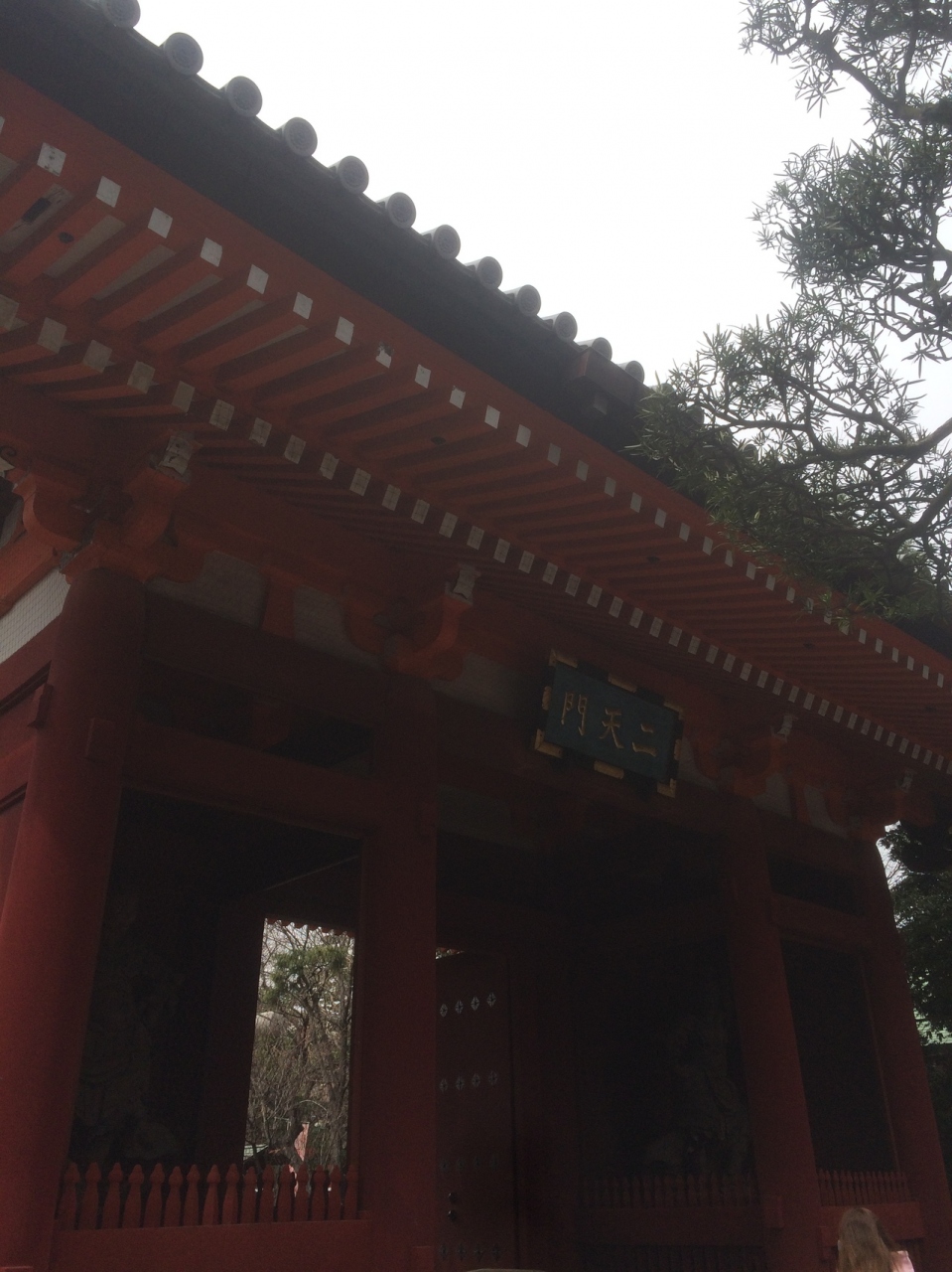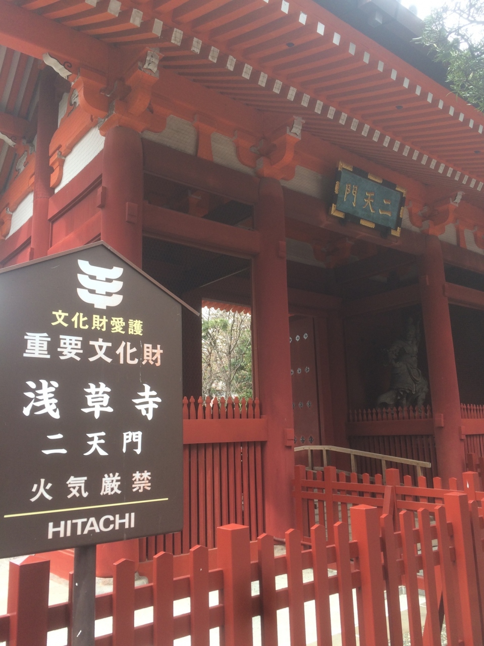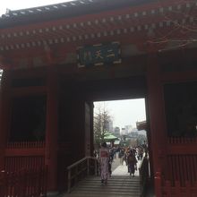 赤い大きな門で、中央は通れるようになっていて緩やかな丸みを帯びた通りでした。左右には仁王像が睨みつけていました。門を潜ると手水場が左側にありましたが水が入ってはいませんでした。大きな迫力がある門でした。