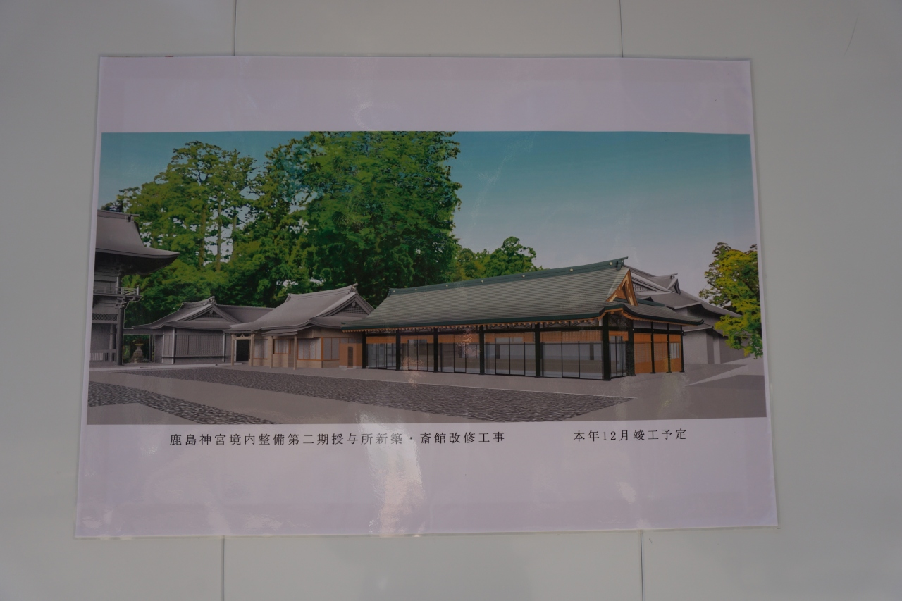 鹿島神宮宝物館は、鹿島神宮の楼門を入ってすぐ左手のはずだったんですが、今は工事中。境内の案内図では休館中となっていましたが、社務所の人に聞くともうなくなったという説明。建て替え工事の説明板にも宝物館とは記されていなくて、本当になくなったのかも。気がかりです。