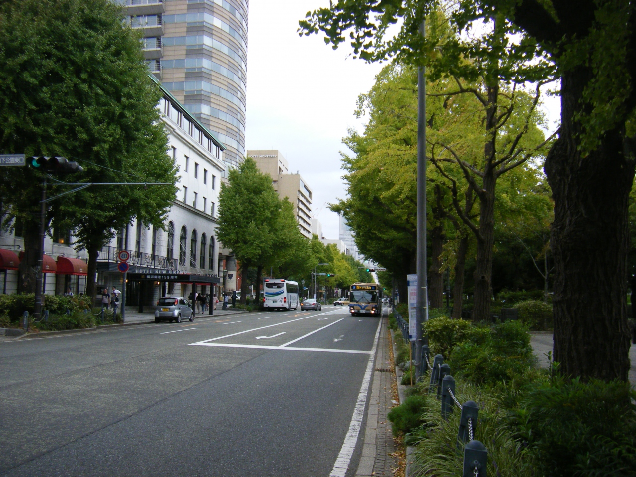 横浜の山下公園のすぐ目の前を通る道になります。山下公園通り沿いにはたくさんのホテルや、マリンタワー、人形の家、山下公園、氷川丸などの観光名所、レストランなどが並んでおり、この道を通るだけでたくさんの名所に行くことができます。10月初旬の山下公園通りは木々がほんのりと色づいてきており、秋の訪れを教えてくれていました。