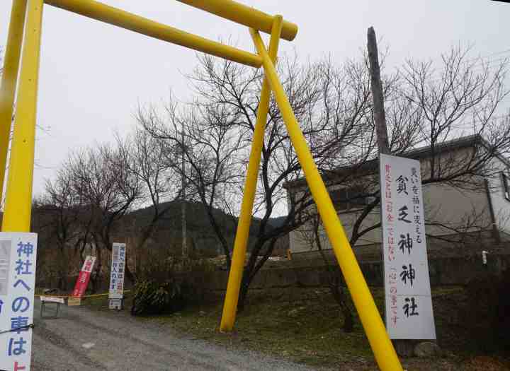 が、しかし、入口?の黄色い鳥居の先にチェーンがかかっていて、入場料100円と書いてあるが、本日は終了しましたとの札が付いていて中には入ることができませんでした。