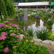 池の周りには紫陽花も咲いていてピンクや白色の彩もありました。