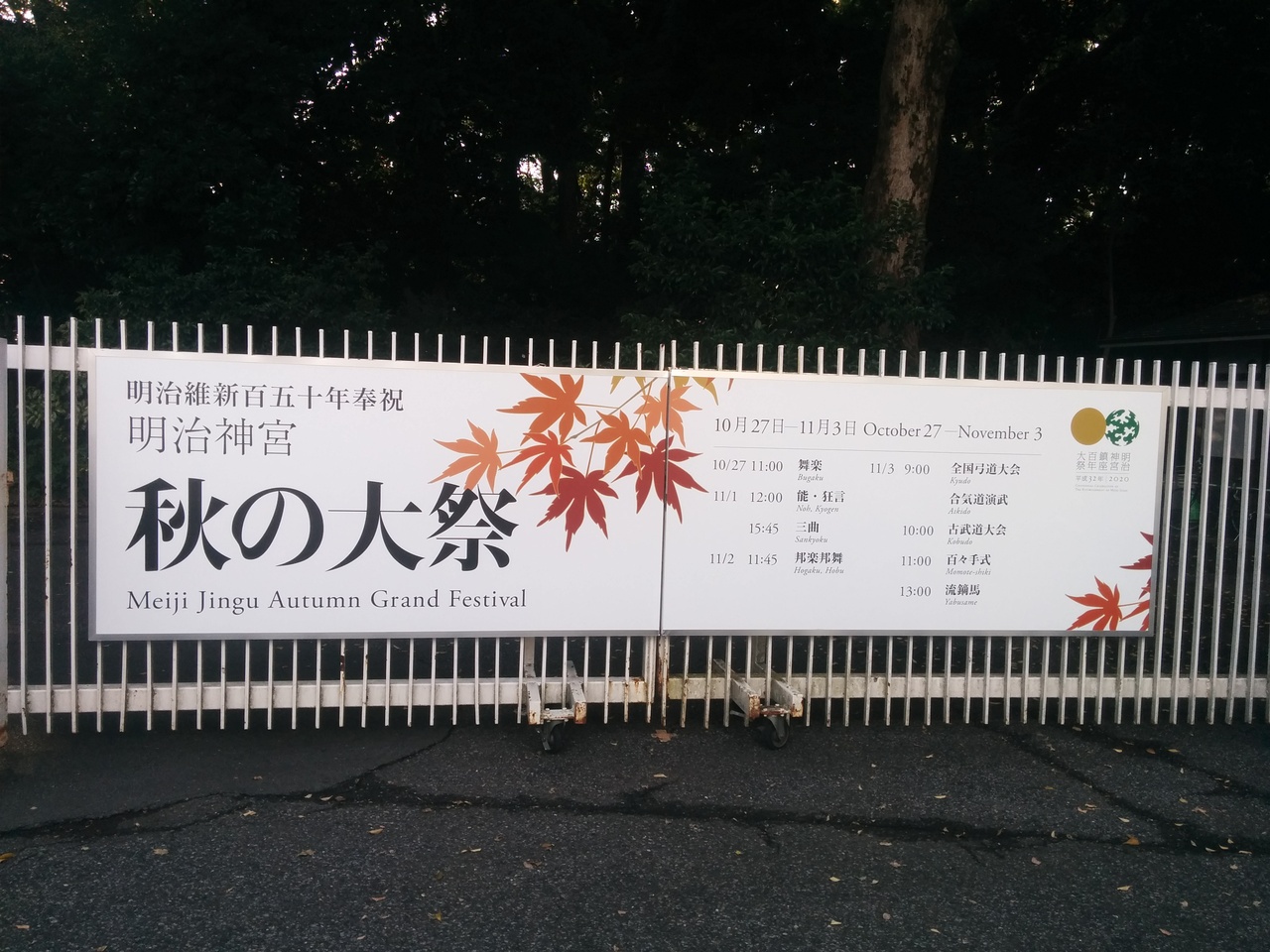 みなさんこんにちは、ふとももぷるぷるです。平成30年10月28日に明治神宮に参拝して来ました。ちょうど明治維新百五十年奉祝明治神宮秋の大祭が開催されておりました。