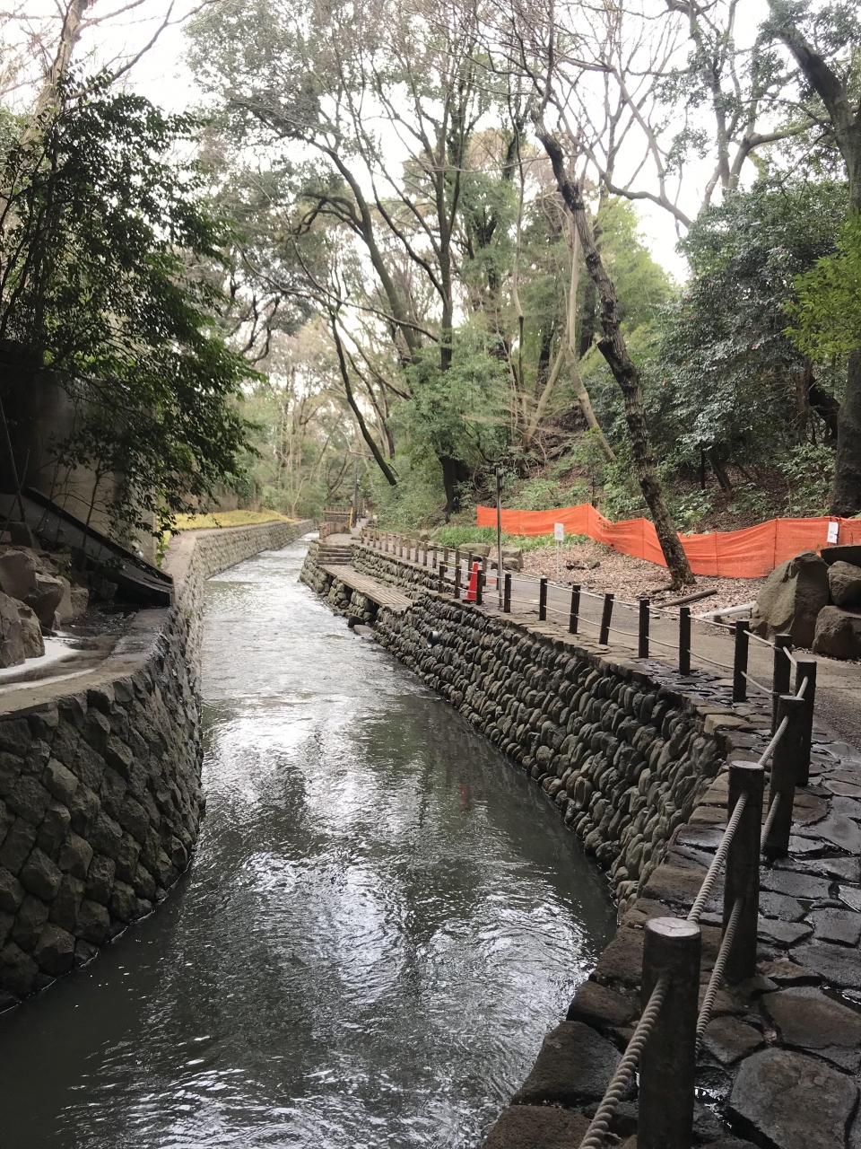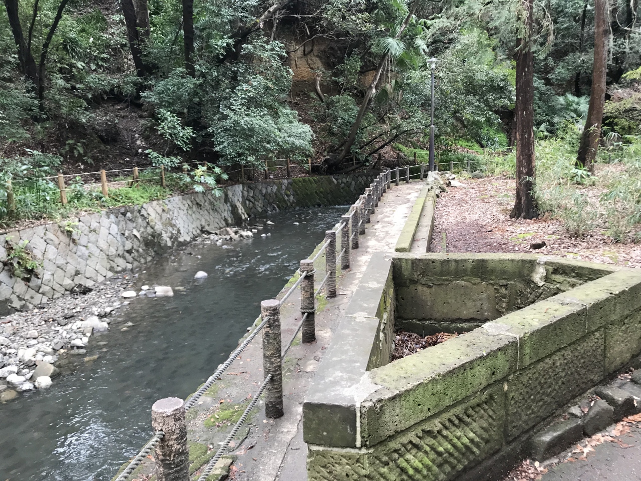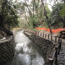 水源の上流はほとんど道路の下か塞がれているらしく、等々力渓谷でやっと日の目をみる川のよう