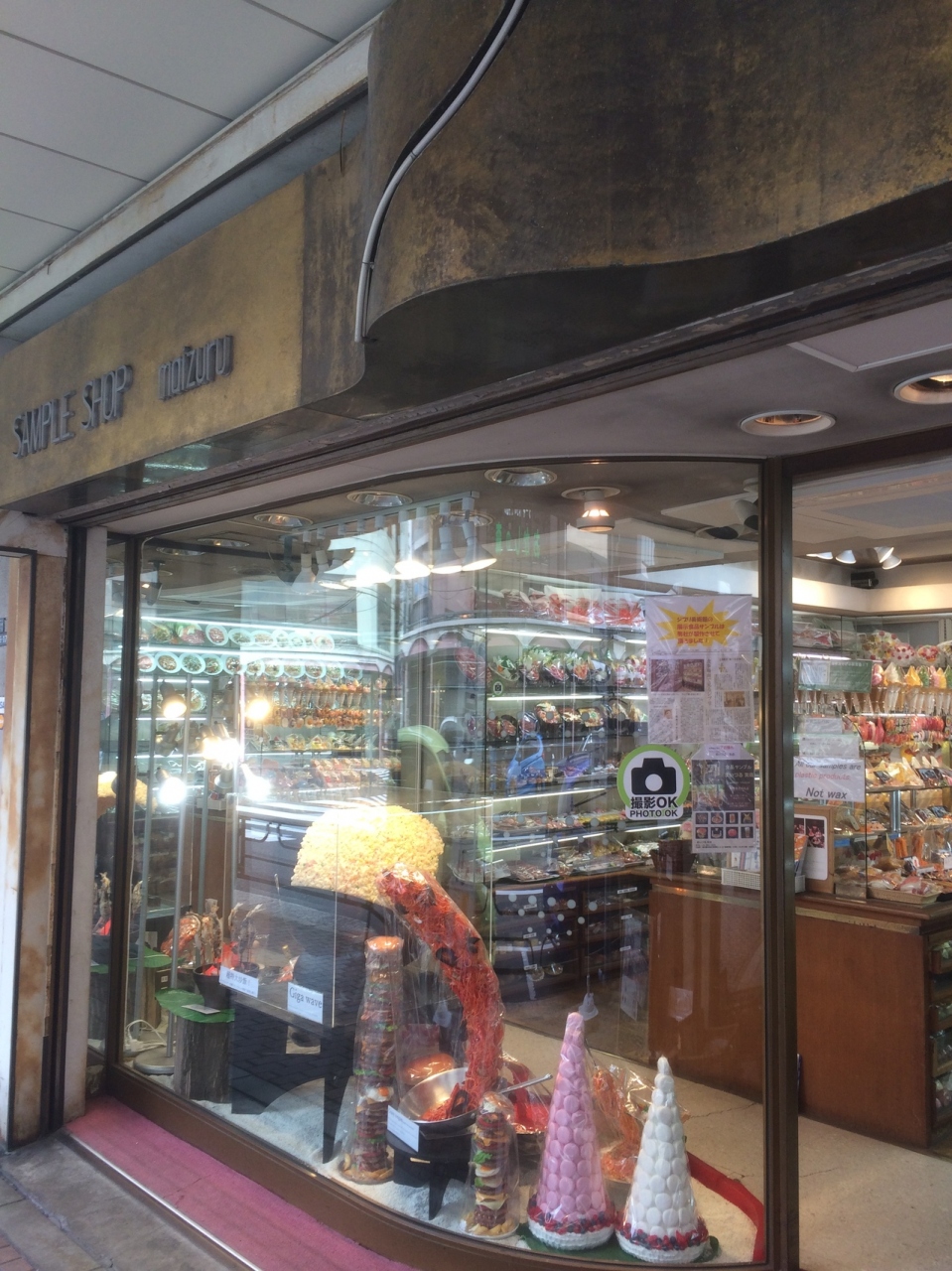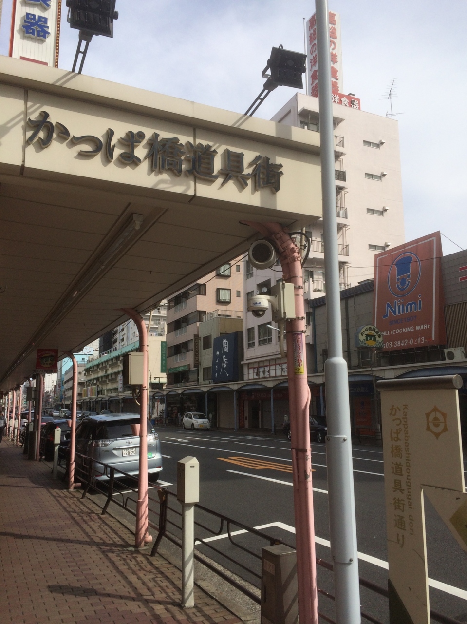 中央には車道、左右には歩道で普通の雰囲気でしたが歩いていると台所やレストラン等の厨房商品を売っている店がたくさんあり、店が連なっていました。ぶらぶらと歩いているだけでも楽しい通りでした。レストランのメニューに飾ってある食品サンプル店もありました。