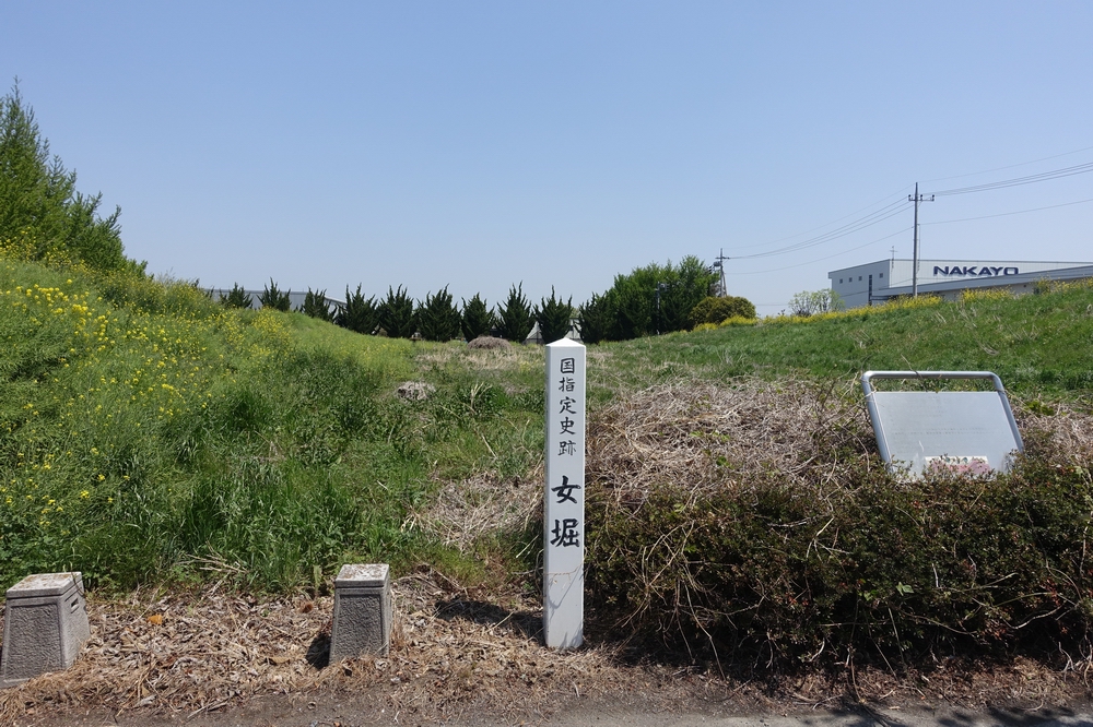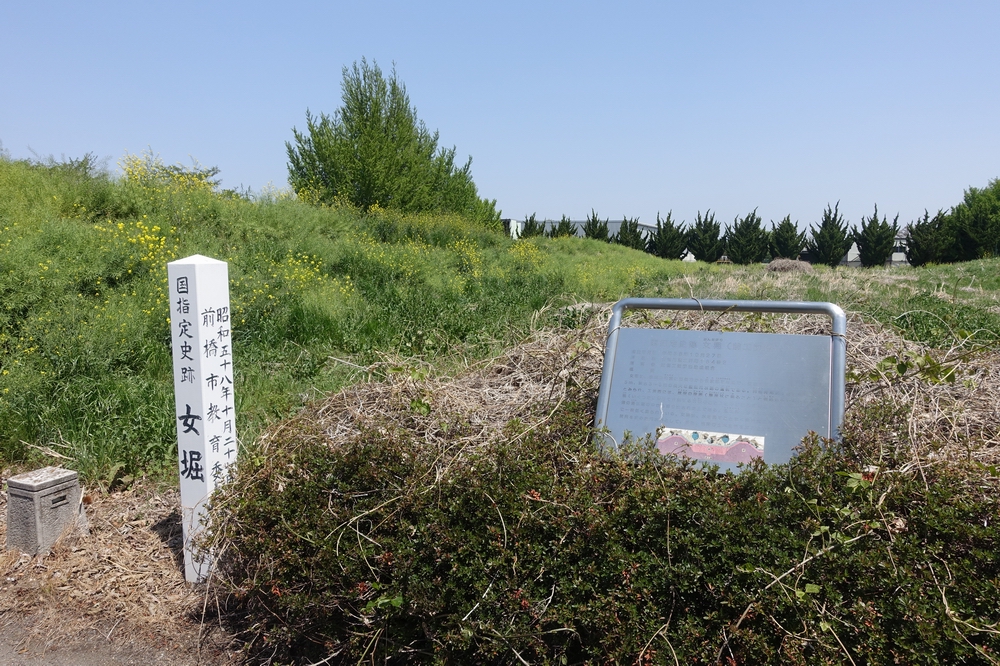 女堀は前橋市から伊勢崎市にかけて築かれた堀の跡。年代は12世紀中期で水を通すことなく未完成に終わったとされています。現在では堀のほとんどが田んぼや畑などになってしまい、何か所かの地区に分かれて断続的に残っている形です。