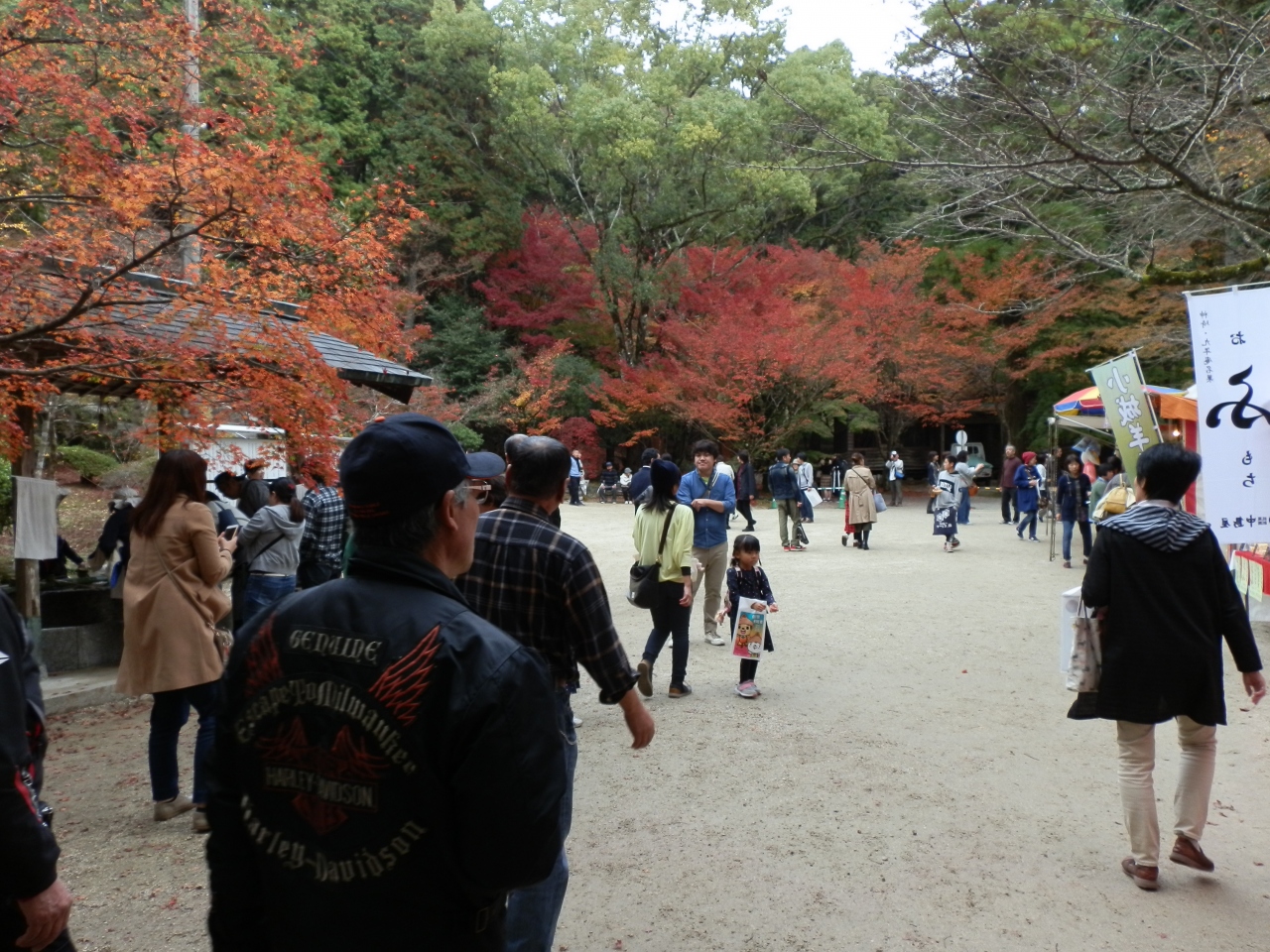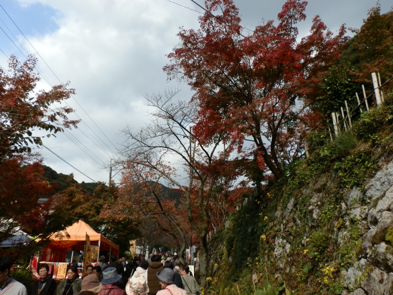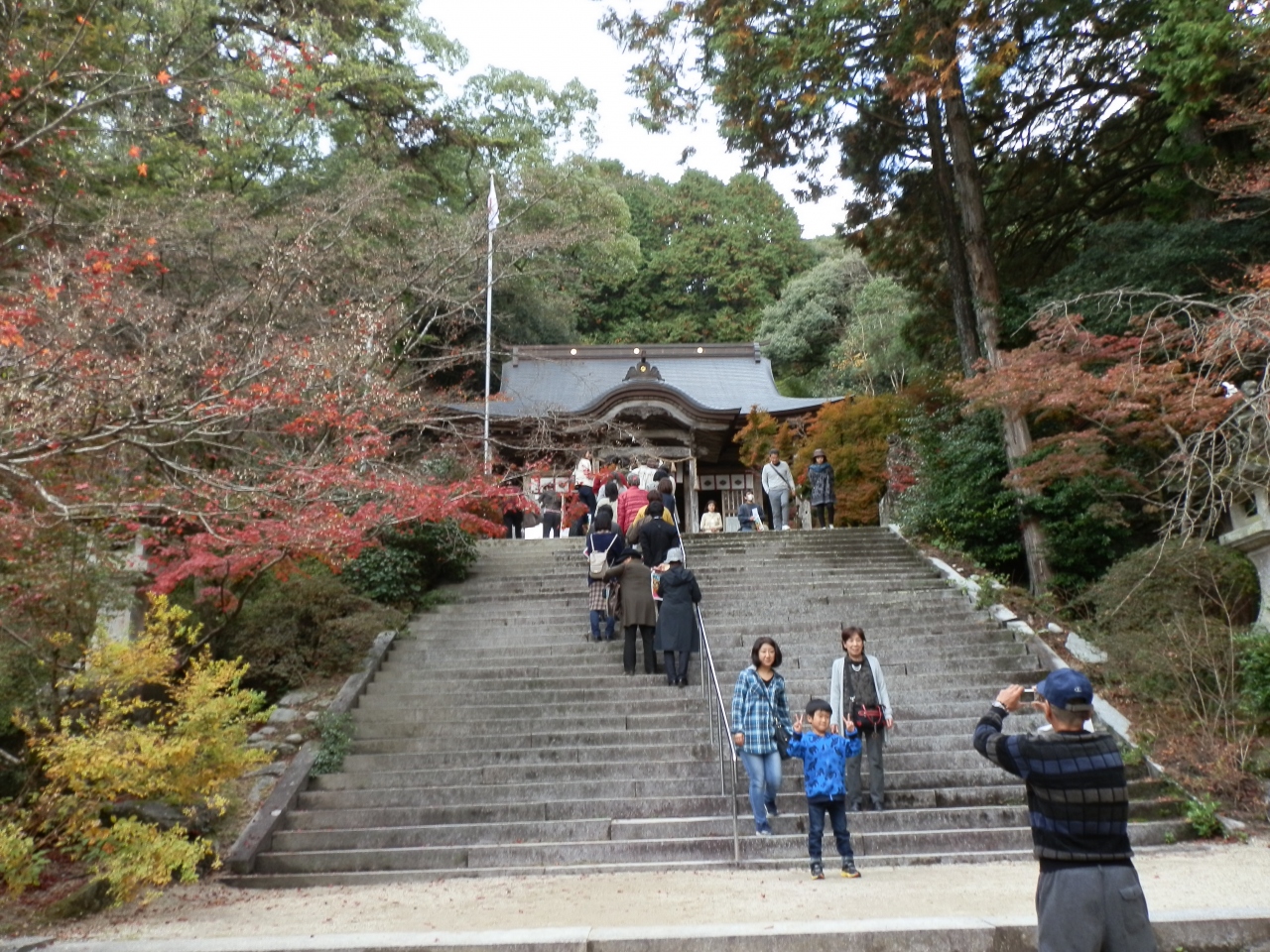 仁比山神社の参道沿いに紅葉の景勝地九年庵があり、ほとんどの観光客の目当ては九年庵の紅葉です。九年庵の紅葉観賞を終えると出口は仁比山神社の石段下に出ます。紅葉を見え終えると帰る人もいます、がたいていの人は仁比山神社の参拝へ向います。