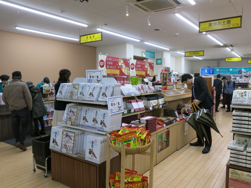 お土産売り場は意外に充実、ベーカリー、食事処、足湯(無料)、乗車券売り場があります。