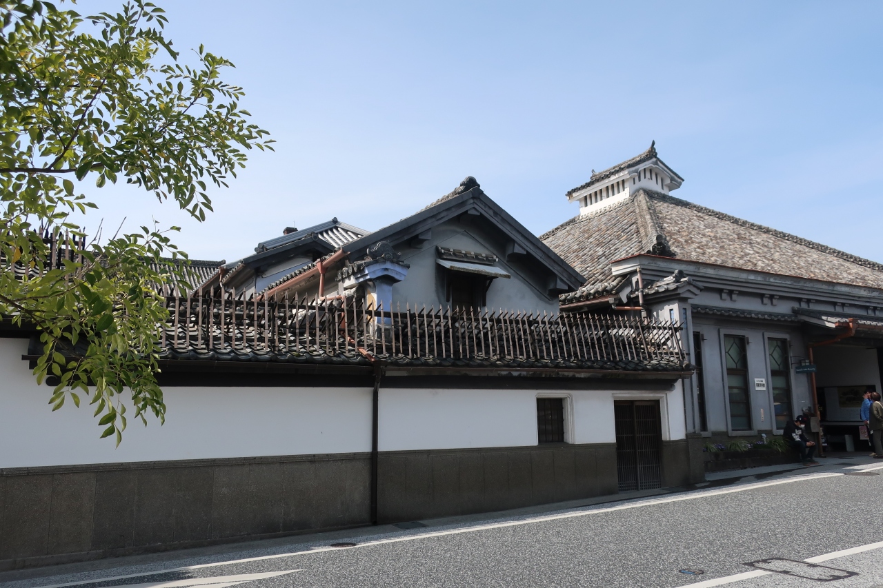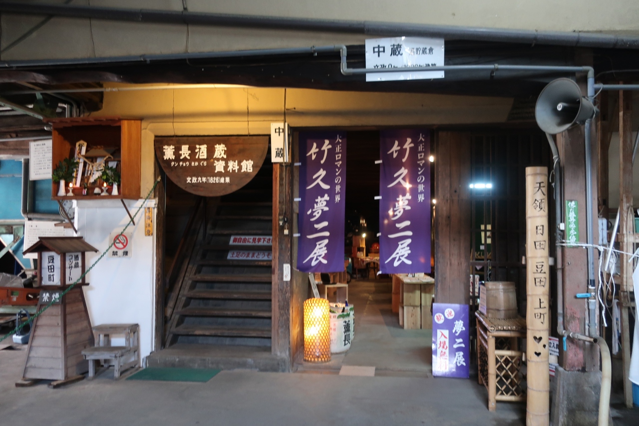 日田・豆田町にある造り酒屋、奥に広がり5つの蔵があり、大きい敷地を持っている。